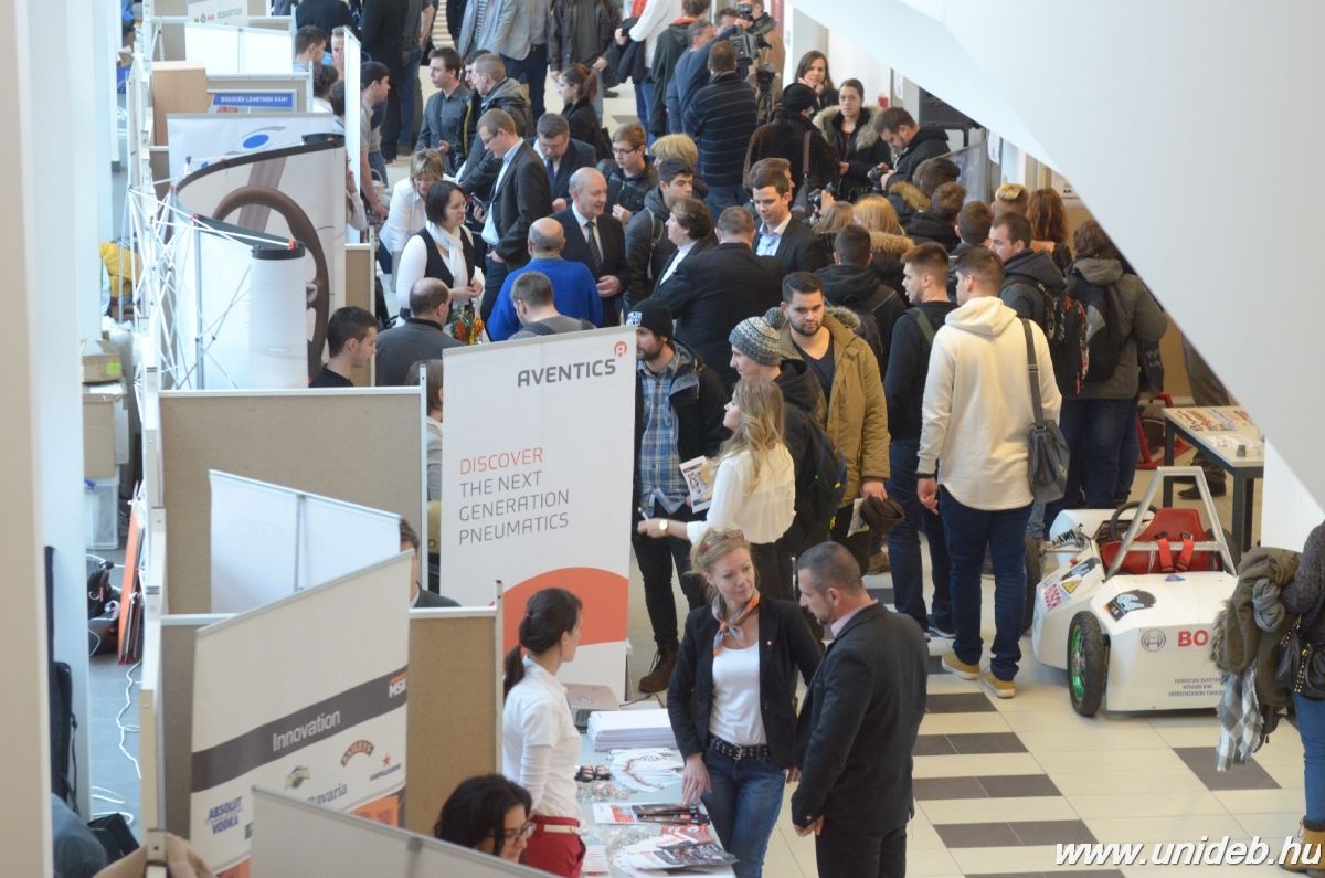A kar hallgatói által épített alternatív meghajtású járműveket és a kormányszimulátort is kipróbálhatták az érdeklődők a január 27-i szakmai napon, ahova elsősorban a pályaválasztás előtt álló diákokat, szüleiket, középiskolai igazgatókat, osztályfőnököket vártak a szervezők. A program célja, hogy az érdeklődők személyesen találkozhassanak azokkal a vállalatokkal, amelyekkel együttműködési megállapodást kötött a gyakorlati képzésre a Műszaki Kar. A partnervállalatok bemutatkozása mellett az első évfolyamos hallgatók is beszámoltak eddigi tapasztalataikról.