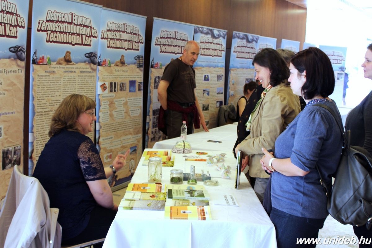 A természet nem szegi meg a törvényét – Célkitűzések és lehetőségek a természettudományos képzésben címmel Pósánné Rácz Annamária, a Debreceni Egyetem oktatási igazgatója tartott előadást, melyben arról is beszélt, hogy az idei általános felvételi eljárásban 5,3 százalékkal több volt az intézményt választó elsőhelyes jelentkezők száma, mint 2015-ben, s a felvételizők körében a Természettudományi és Technológiai Kar a harmadik legnépszerűbb.