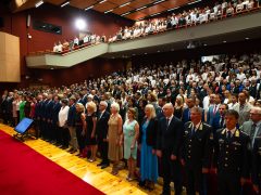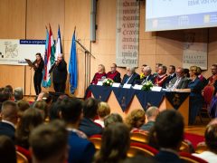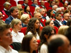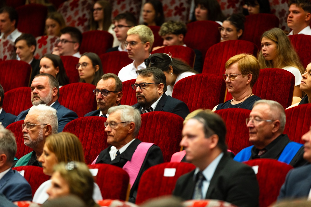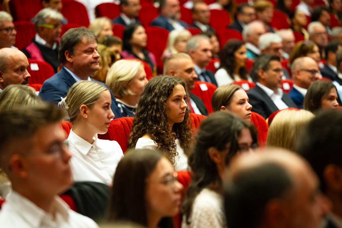 – Ez a nap nemcsak az új tanév kezdetét jelzi, hanem az önök életének egy új, meghatározó fejezetét is – köszöntötte az elsőéves hallgatókat Szentesi Sándor, az SZTE Egyetemi Hallgatói Önkormányzat (EHÖK) elnöke. – Mostantól nem csupán hallgatók, hanem egy olyan közösség tagjai is, amelynek értékét a tudás, a nyitottság, a szorgalom és az összetartozás adja. Az előttük álló években nemcsak tanulni fognak, hanem barátokat szereznek, közösségeket építenek és formálják a saját jövőjüket, valamint egyetemünk közösségének jövőjét is. Tudom, hogy az út elején sok a kérdés, de biztosíthatom önöket, hogy a Szegedi Tudományegyetem nemcsak tudást, hanem támogatást is ad. Mind az egyetem, mind a karok vezetése és a Hallgatói Önkormányzat azon dolgozik, hogy az itt eltöltött éveik emlékezetesek és élményekben gazdagok legyenek. Kívánom, hogy legyenek bátrak új lehetőségeket keresni, merjenek hibázni és mindig higgyenek abban, hogy itt, Szegeden önök a legjobbat hozhatják ki magukból – fogalmazott Szentesi Sándor.