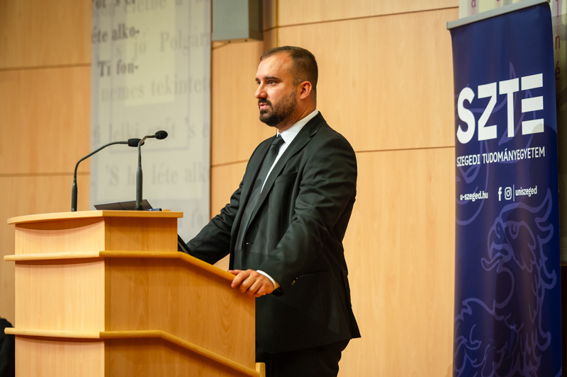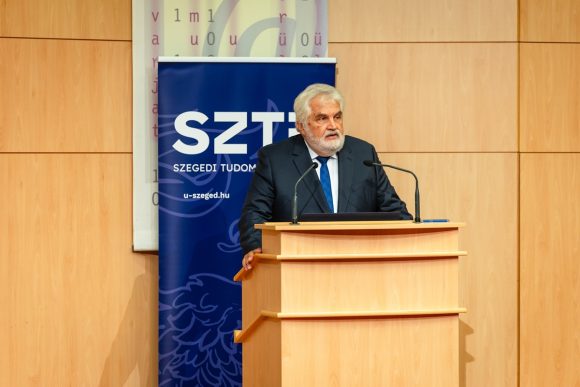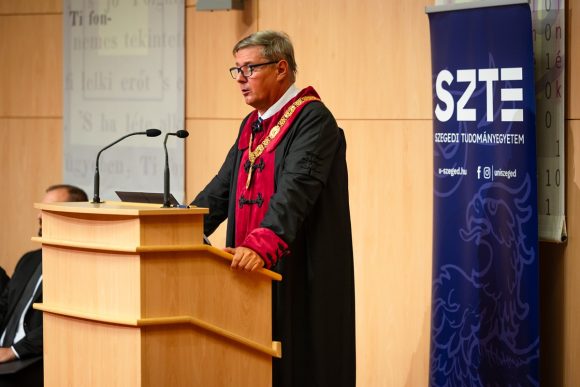 – Önöket most már nem akarja és nem is tudja passzív módon megtanítani senki arra, amit az egyetemen el kell sajátítani. Ez csak akkor fog működni, ha önök ebben együttműködnek, sőt, az igazán jó egyetemen az szokott lenni, hogy a hallgatók ösztönzik az oktatókat arra, hogy témájukból többet mondjanak el. De miből látszik az, hogy az egyetem jó? Prof. Dr. Szabó Gábor szerint ehhez elég megnyitni a Szegedi Tudományegyetem weboldalán éppen megtalálható cikkeket. A beszámolók jól érzékeltetik az egyetem szerteágazó tudományos tevékenységét: Szegeden zajló nagy jelentőségű élettani konferencia, az SZTE-n a napokban rendezett nemzetközi altajisztikai konferencia, a szegedi egyetem klímaváltozási kutatócsoportjának konferenciája, az archeogenetikai felfedezés, miszerint az Urál melletti és a Kárpát-medencébe vándorolt szarmaták közötti genetikai kapcsolat van, az OTDK-nyertes biológushallgató témája, amelynek szerepe lehet az emberi infertilitás hátterében álló genetikai tényezők megismerésében, egy hálás beteg által az SZTE Szemészeti Klinikája számára írt köszönőlevél, vagy a tény, hogy az ARWU-rangsorban idén is a Szegedi Tudományegyetem lett Magyarország legjobb egyeteme – mindebből az SZTE kutatási, oktatási és közösségi életének sokszínűsége rajzolódik ki – ismertette.