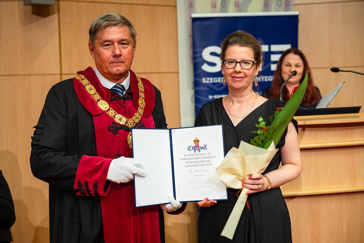 Az Egyetemi Tudományos Tanács az Év Élettudományi Publikációja Díjat Dr. Viola Rékának, az SZTE Gyógyszerésztudományi Kar Klinikai Gyógyszerészeti Intézet tudományos munkatársának adományozta. Az Év Műszaki-Természettudományi Publikációja Díjat Dr. Janáky Csaba, az SZTE Természettudományi és Informatikai Kar Fizikai Kémiai és Anyagtudományi Tanszék docense nyerte el. Az Év Bölcsészet- és Társadalomtudományi Publikációja Díjat Dr. Habók Anita, az SZTE Bölcsészet- és Társadalomtudományi Kar Neveléstudományi Intézet docense vehette át az ünnepségen.