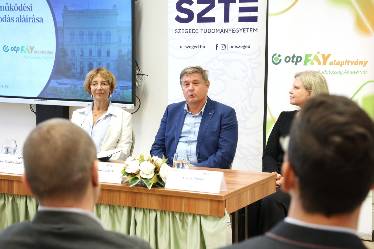 A pénzügyi műveltség elsajátításának támogatása az egyik legfontosabb célja annak a megállapodásnak, amelyet a Szegedi Tudományegyetem és az OTP Fáy Alapítvány vezetői 2025. szeptember 16-án írtak alá Szegeden. Az oktatási anyagok fejlesztésével, új képzések létrehozásával a hallgatók és a fiatal felnőttek pénzkezelési, gazdálkodási és gazdasági ismeretei és viselkedéskultúrája javulhat.