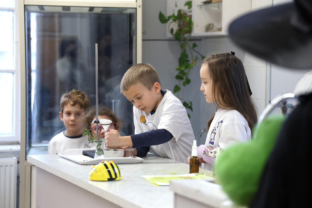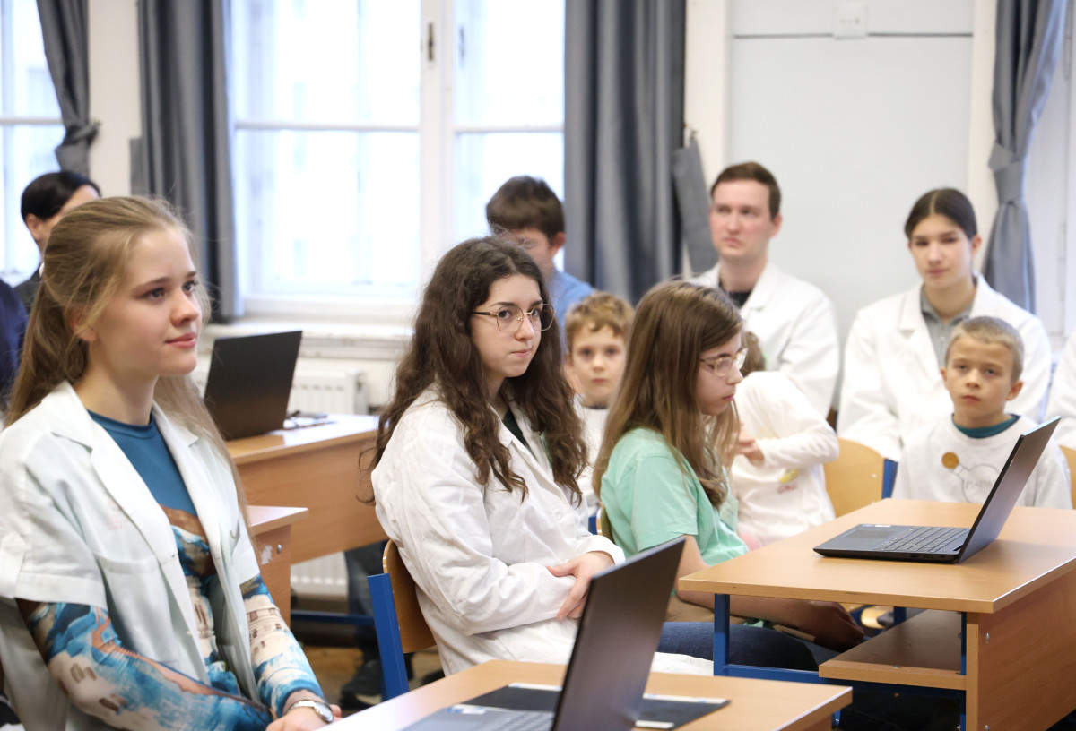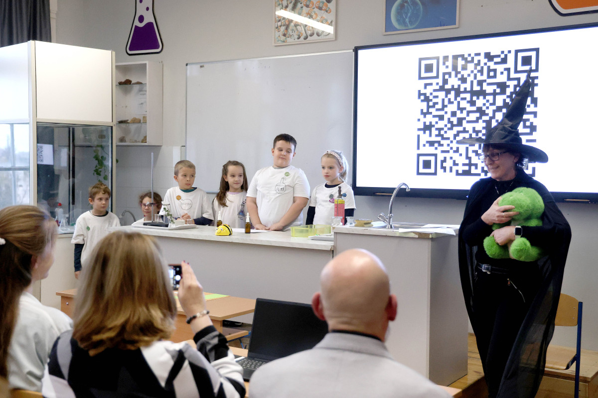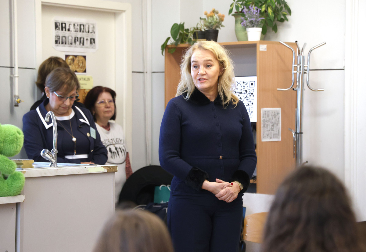 Dr. Zsigriné Dr. Sejtes Györgyi, az SZTE Juhász Gyula Gyakorló Általános és Alapfokú Művészeti Iskola igazgatója arról beszélt, hogy büszkék arra, hogy az SZTE mint fenntartó szakmai és anyagi támogatásával 2024-ben elindulhatott az első alkalmazott reáltudományi osztályuk kötelezően választható művészeti orientációval. – Dr. Szántay Csaba és kollégái voltak a „Varázsórák” első látogatói, ahol az akkori kis elsősök bájitalt készítettek és ámulattal figyelték a kémia csodáját. A szakmai beszélgetésekből egy országosan is egyedülálló együttműködés született. Olyan megállapodás, ami nem csupán formális kapcsolat, hanem inspiratív együttgondolkodás is, amely a szakmai fejlődés, a közös munka alapja. Ennek szép példája iskolánk TETT-mesekönyve is. A Richter-terem lehetőség arra, hogy a gyerekek kísérletezzenek, tapasztaljanak, kérdezzenek, és sokszor elhangozzék az a világ működésére rácsodálkozó tőmondat, hogy „Hát, ez furcsa!” Ez a terem a partnerség, az elköteleződés és a jövőbe vetett bizalom szimbóluma is – hallottuk az igazgatónőtől.