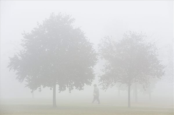 Egy nő gyalogol a sűrű ködben Debrecenben 2015. november 6-án. Ezen a napon az Alföld szűkebb térségében hosszabb ideig, néhol tartósan megmarad a köd, elvétve ködszitálás is előfordulhat. MTI Fotó: Czeglédi Zsolt