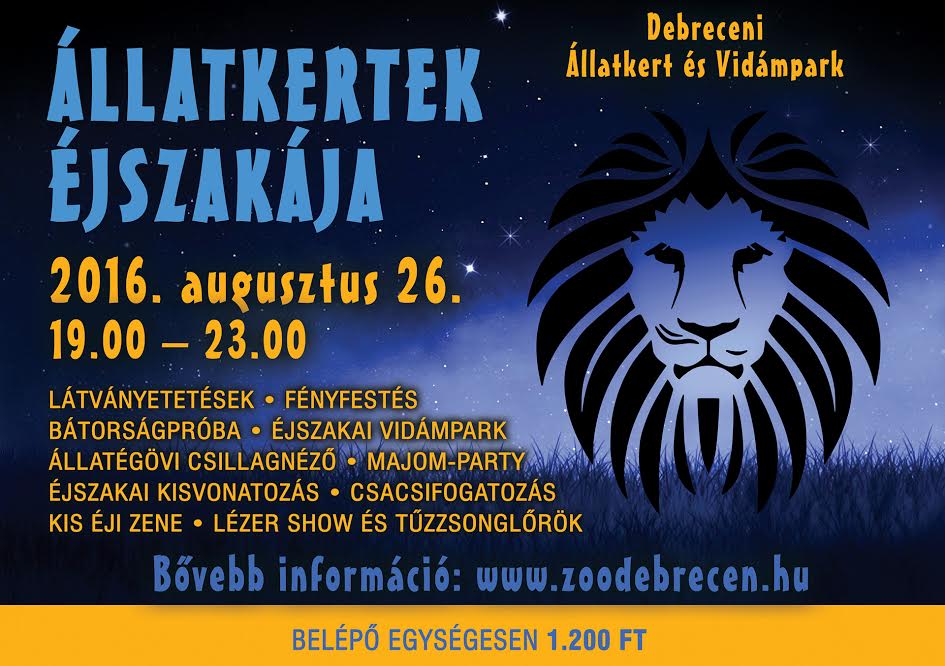 Állatkertek Éjszakája a Debreceni Állatkertben és Vidámparkban