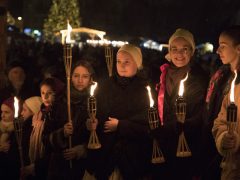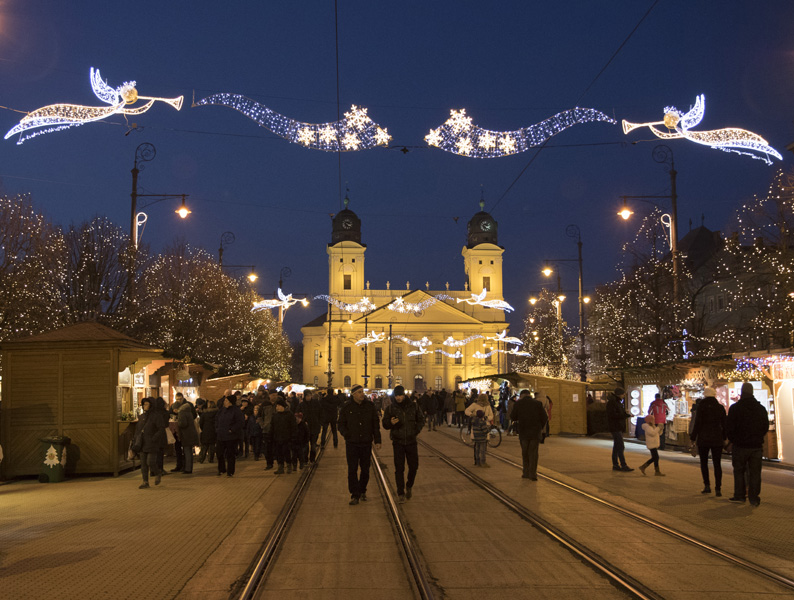 Debrecen főterén meggyújtották az adventi koszorú második gyertyáját 2016. december 4-én.
