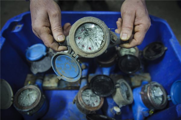 Kép: A hideg idő miatt elfagyott vízórák a Debreceni Vízmű Zrt. Balmazújvárosi úti telephelyén.