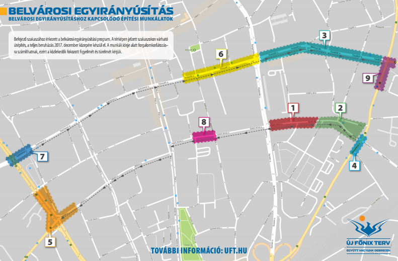 Az egyes szakaszok átalakítása után ott már az új rend szerint lehet közlekedni, míg a beavatkozással nem érintett területeken még a régi forgalmi rend lesz érvényben. Az átmeneti időszakban fokozott figyelemmel kell az autósoknak közlekedni. A változást mindenhol tábla jelzi, emellett – mivel idén februárban Debrecen csatlakozott a Waze Connected Citizens rendszeréhez – mobiltelefonokon és a debrecen.hu honlapon naprakészen követhető, hogy hol van felújítás a belvárosban.