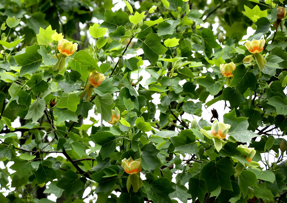 A kifejlett tulipánfa lombkoronája kúpos, piramis alakú, mely a növény idősebb korára a felső részen kiszélesedik. A széles, tulipán alakú levelek élénkzöldben díszlenek, hogy aztán ősszel szép, sárgás-aranysárgás árnyalatot vegyenek fel, így több évszakon keresztül dekorálják a kertet, az utcát.