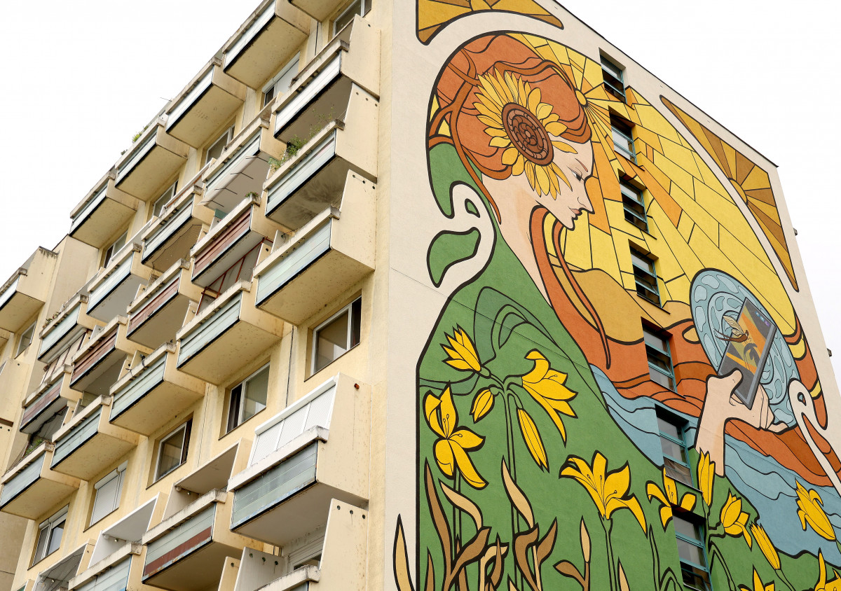 Tízemeletes panelházon jelent meg Szeged múzsája.