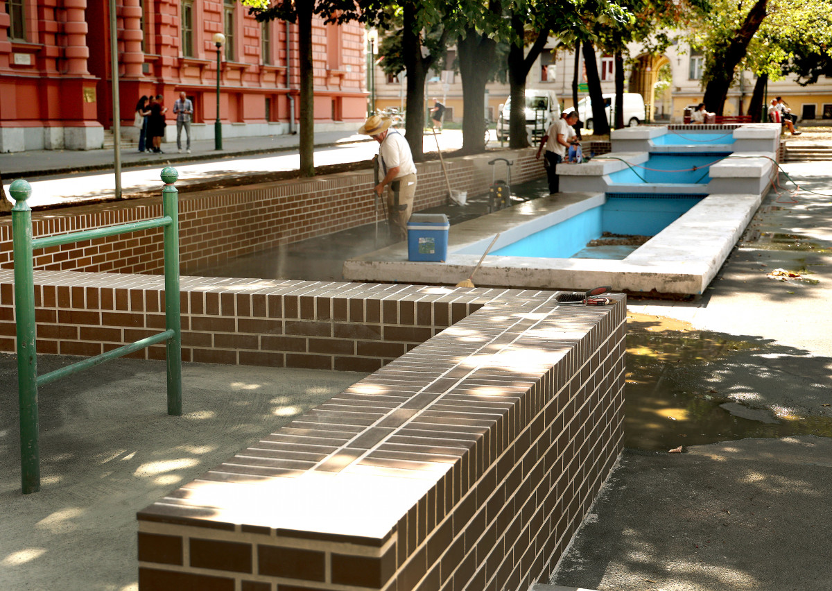 A téren lévő, egy ideje már nem működő szökőkutat a Szegedi Környezetgazdálkodási Kht. szakemberei javították meg, így ismét működőképes lett.