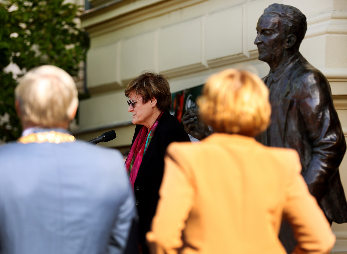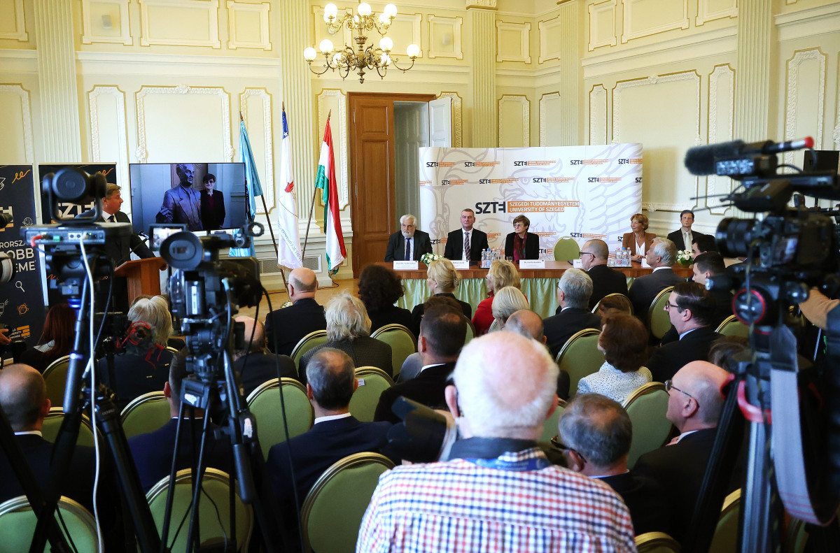 Botka László polgármester elmondta, hogy a kutató engedélyével a város egyik legmagasabb, a Bertalan híd melletti épületére, az újszegedi tizenhét emeletes toronyházra felfestik Szeged két Nobel-díjasának portréját.