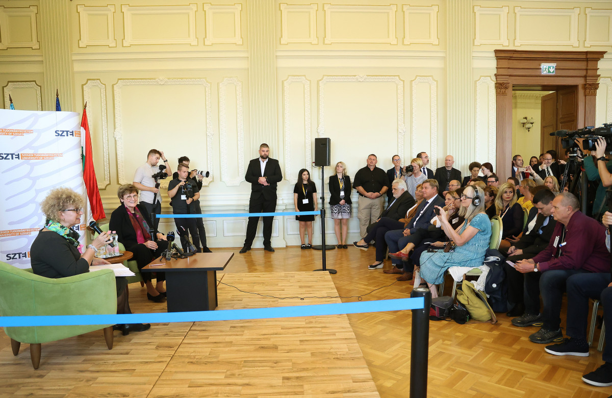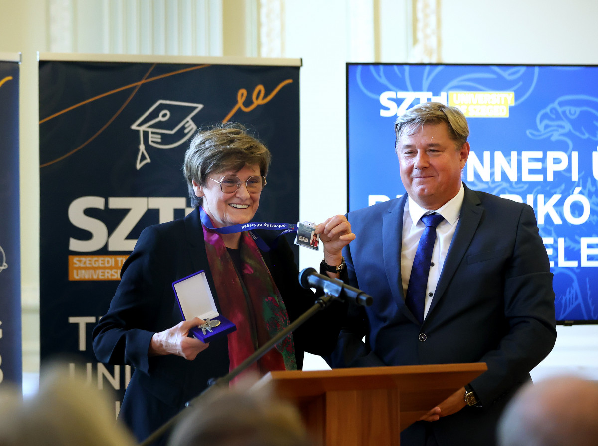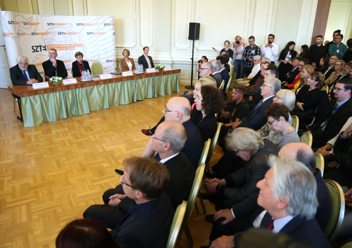 – Amikor az amerikai egyetemen a Nobel-díjjal kapcsolatos sajtótájékoztató véget ért, Weissman elment ünnepelni az ő csapatával, én pedig hazamentem. Ezért vagyok most itt, mert az én kollégáim az SZBK-ból, az egyetemi csoporttársaim, a tanáraim, a kisújszállásiak, akik tanítottak, azok itt vannak. És én most jöttem ünnepelni – mondta rövid beszédében Karikó Katalin, és nagy tapsot kapott.