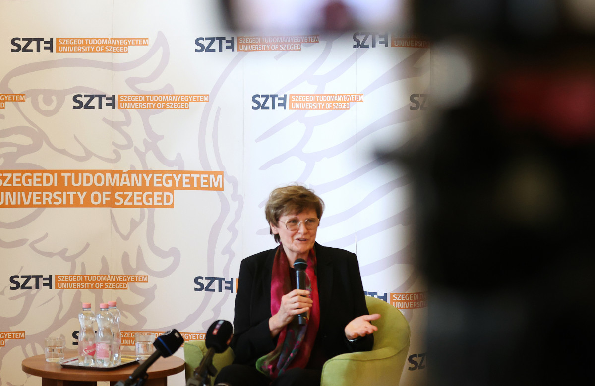 A Szegedi Tudományegyetem Nobel-díjas kutatóprofesszora 17 óra 15 perctől a JATE Klubban szemináriumot tartott egyetemi hallgatóknak.