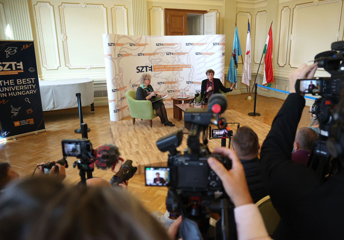 Délután 15 órától szintén az egyetemen online-közvetített sajtóbeszélgetésen vett részt Karikó Katalin, amelyre mintegy 30 szerkesztőség küldte el munkatársait, és előzetesen ötvennél is több kérdést küldtek be.