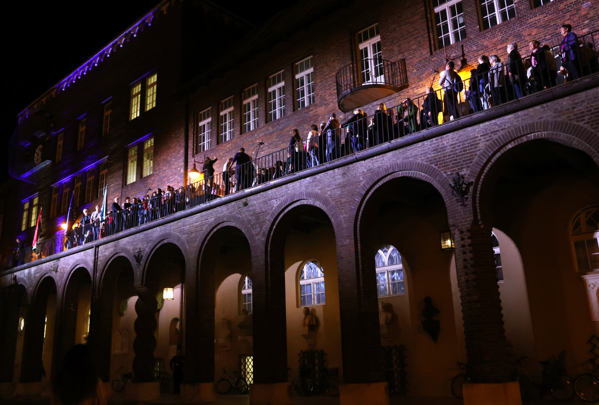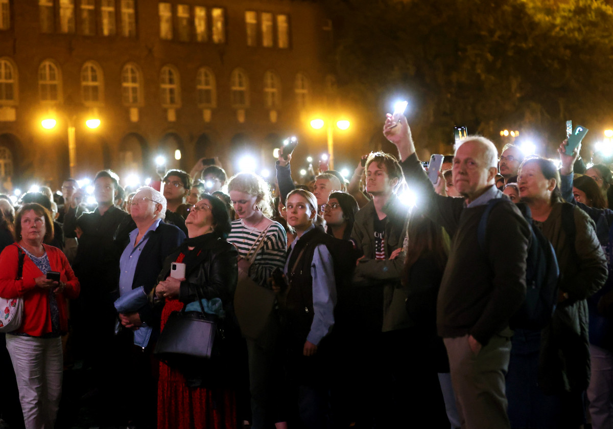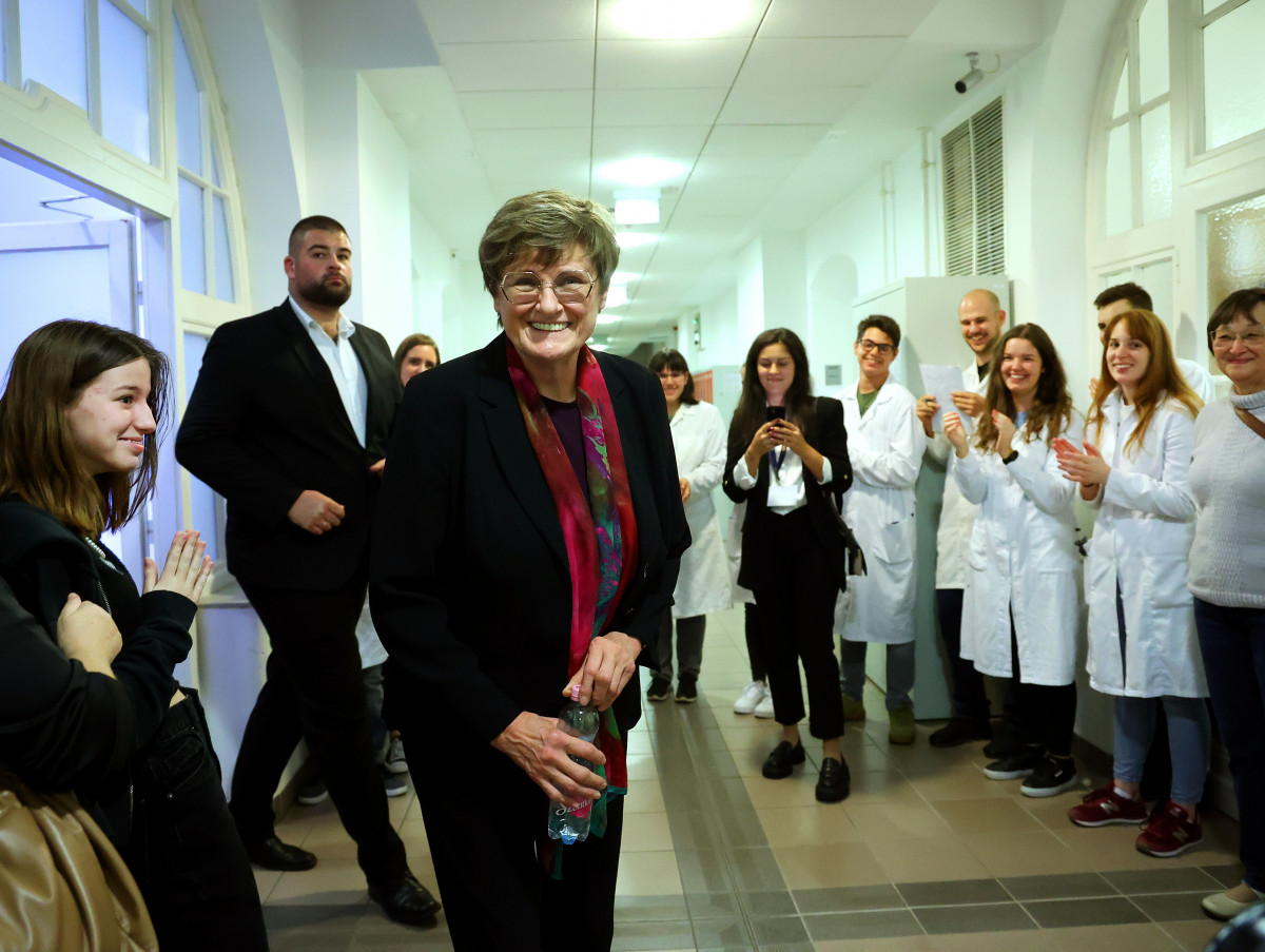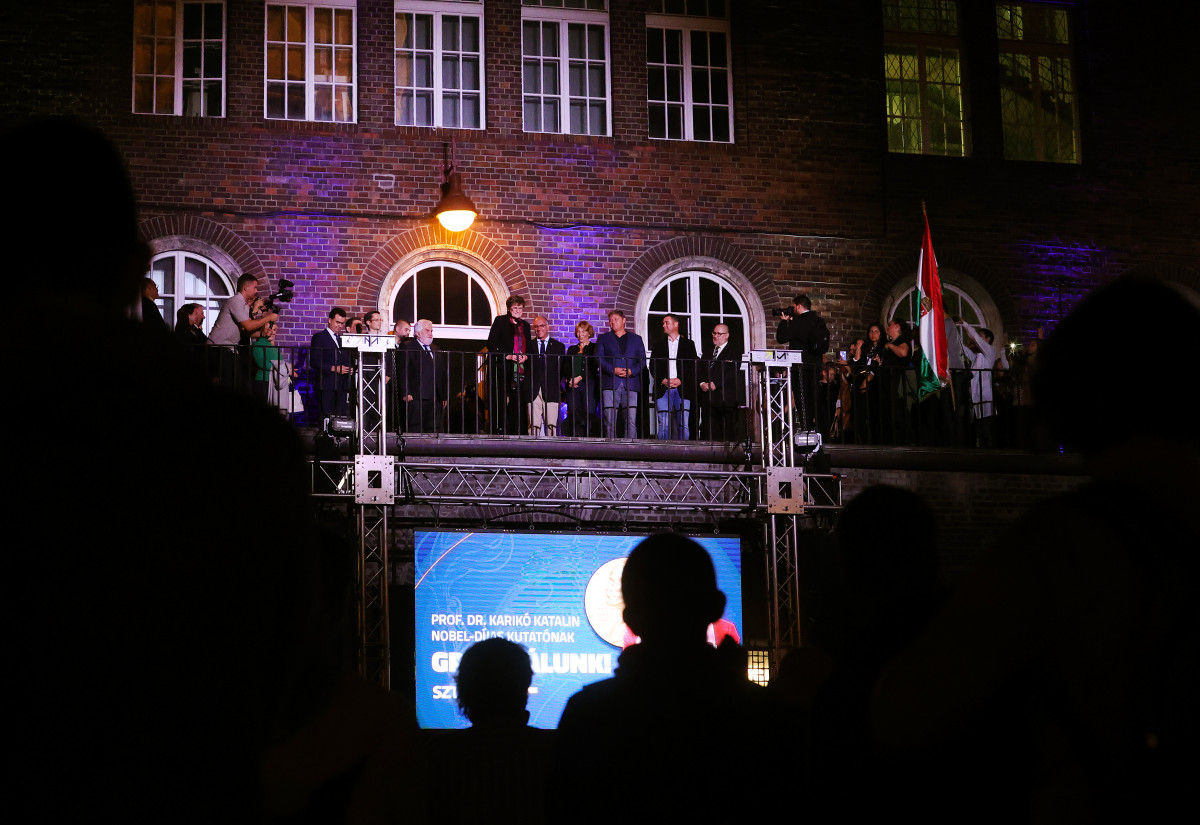 Kora délután sokan összegyűltek a Dugonics téren Karikó Katalin ünneplésére, és nagy taps köszöntötte a Nobel-díjas kutatót. A Rektori Hivatalban 14 órakor kezdődött ünnepi ülésen a meghívott vendégek felállva, vastapssal köszöntötték a tudóst.