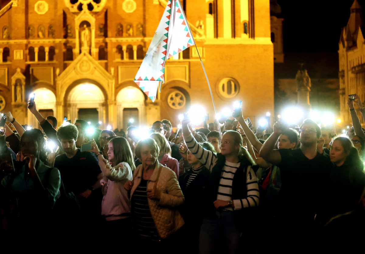 A nap utolsó programja volt, hogy Karikó Katalin 19 órakor a JATE Klubtól a Dóm térre indult, és ott is találkozott az őt köszöntő szegediekkel.
