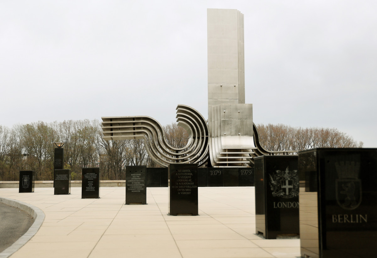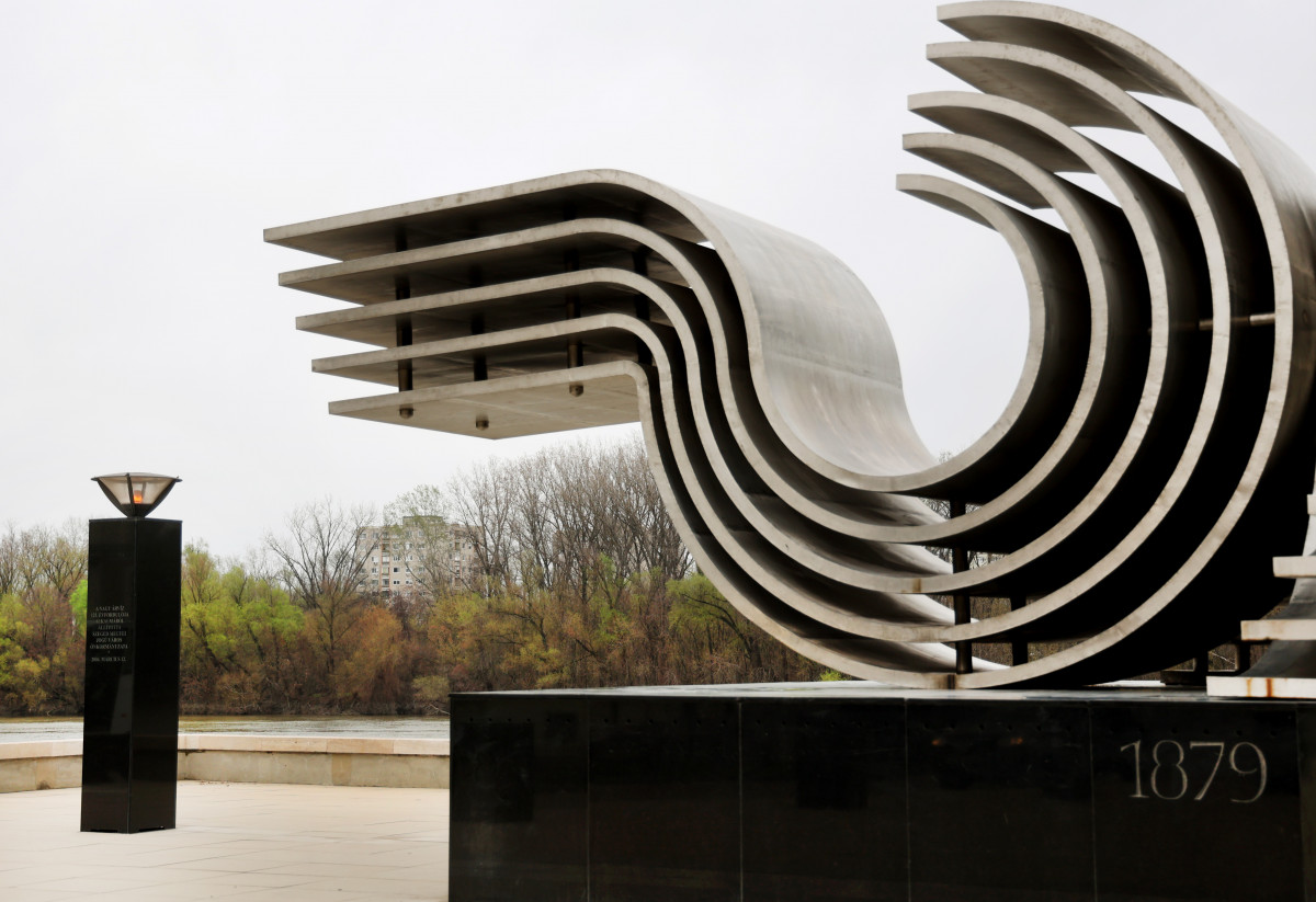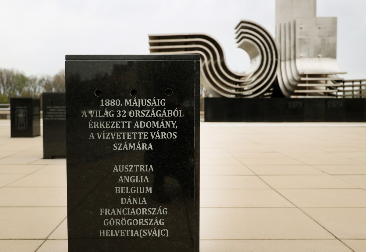 100 évvel az 1879. március 12-i árvíz után avatták fel Segesdy György krómacélból készült emlékművét, amely már messziről felhívja magára figyelmet. A műalkotás az egymásnak feszülő hullámokkal egyrészt a természet erejét, másrészt az ember diadalmas helytállását szimbolizálja. Az emlékműhöz közelítve fekete gránitoszlopok kísérnek, a fekete emlékoszlopokon azon nagyvárosok címerei láthatóak, amelyek a katasztrófa után a legtöbb segítséget nyújtották abban, hogy Szeged újjáépülhessen. Külön emlékoszlopot állítottak Róma, Brüsszel, Berlin, Párizs, London és Bécs jó szándékú polgárai tiszteletére.
