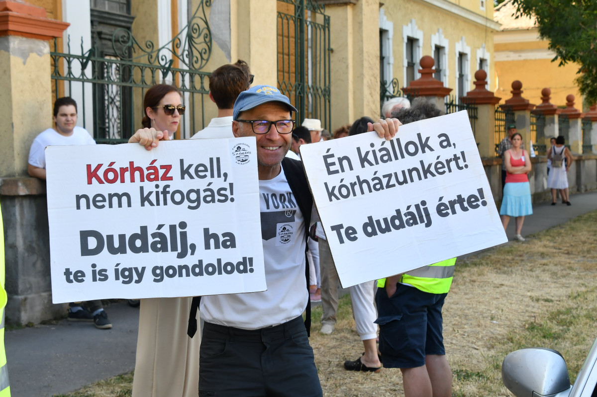 “A szentesi kórház évtizedek óta rossz állapotban van. A dolgozók viszik a hátukon, sokszor lehetetlen körülmények között. A szülészet bezárt. Több osztály jövője teljesen bizonytalan. A betegek nem tudják, mire számíthatnak. Pedig nagyjából 110.000 ellátottról van szó. És ami a legaggasztóbb: a fenntartó hallgat” – mondta el beszédében a koordinátor.