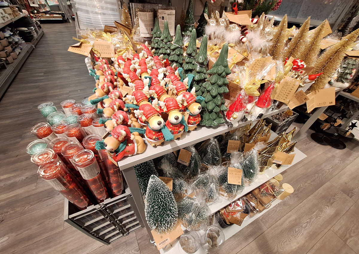 Ezek a termékek között általában a következők találhatóak: karácsonyfadíszek, fényfüzérek, gyertyák és gyertyatartók, girlandok, adventi koszorúk és egyéb asztali díszek, karácsonyi mintás párnák, takarók és terítők vagy épp ünnepi tematikájú bögrék, tányérok, sütőformák, díszpapírok, masnik, ajándéktasakok.