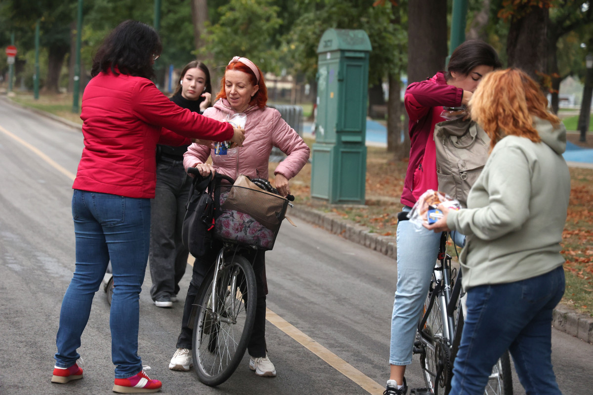 Szeged idén is csatlakozott az Európai Mobilitás Héthez és az Autómentes naphoz, amely keretében reggelivel várták ma a Stefánia felé bringázókat.