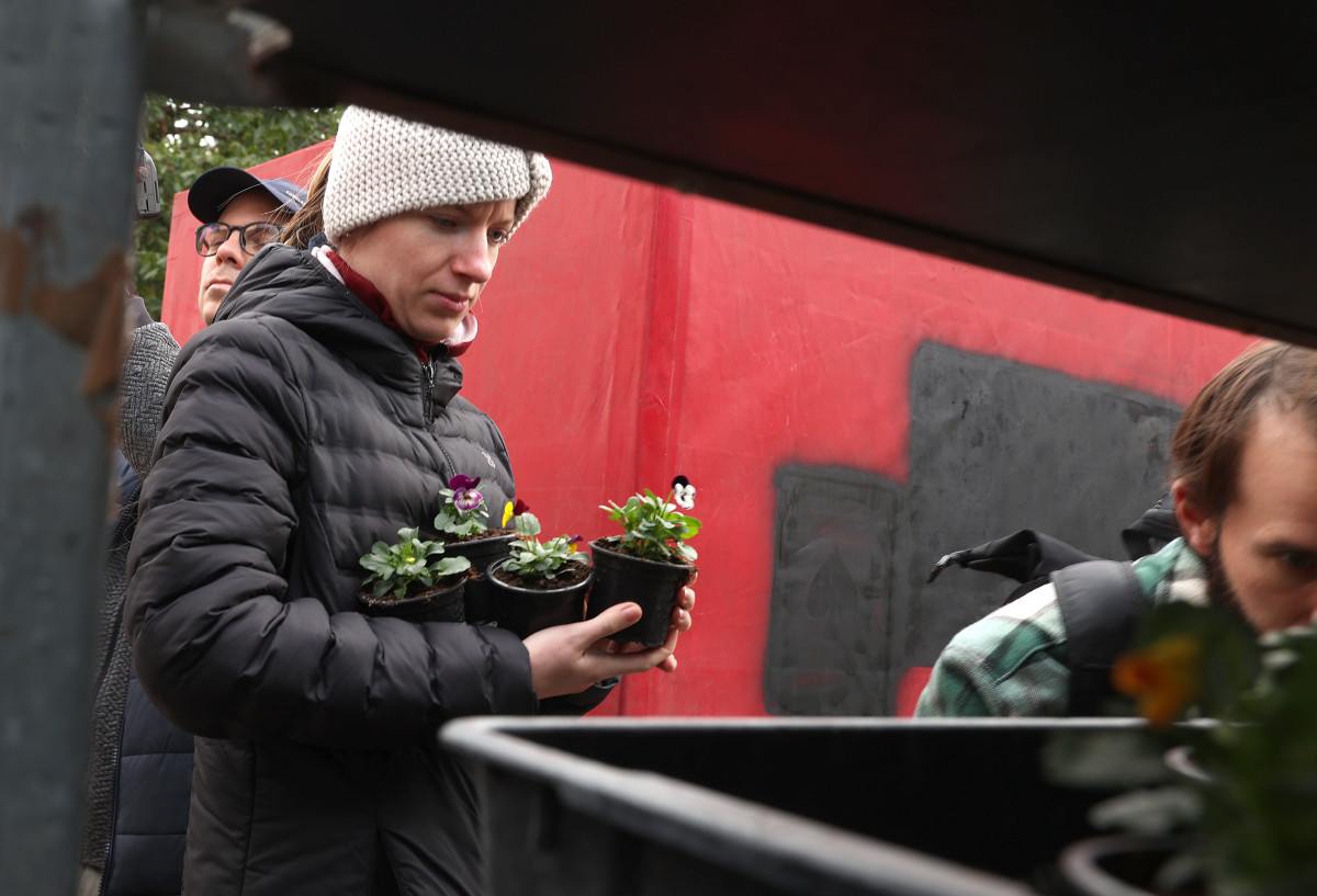 Szeged, őszi virágosztás, Újszeged, Kállay Albert utca, Mihálik Edvin, önkormányzati képviselő, árvácska