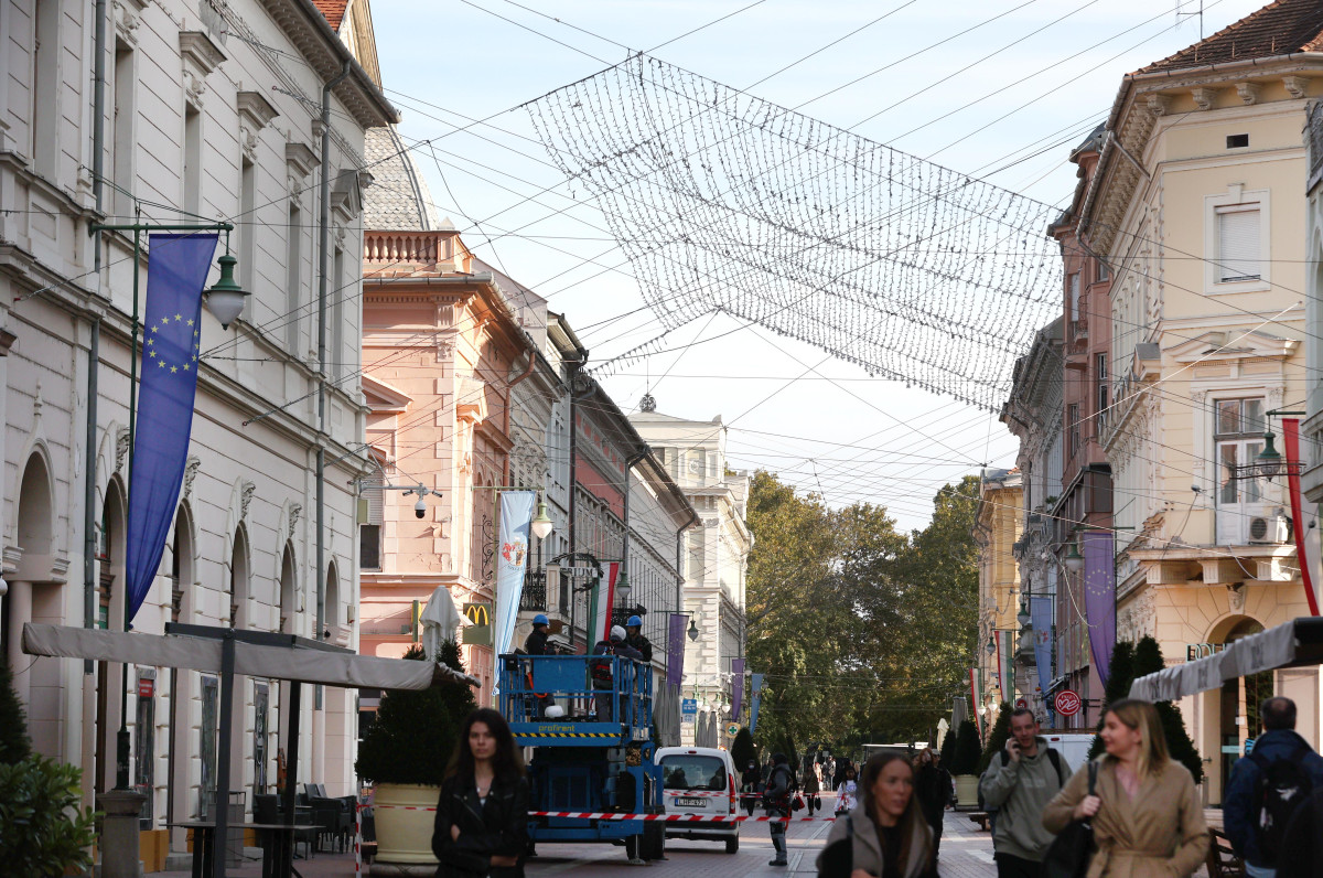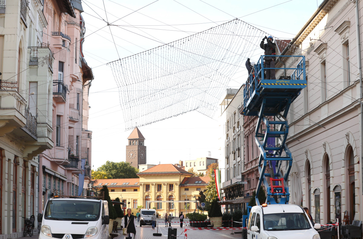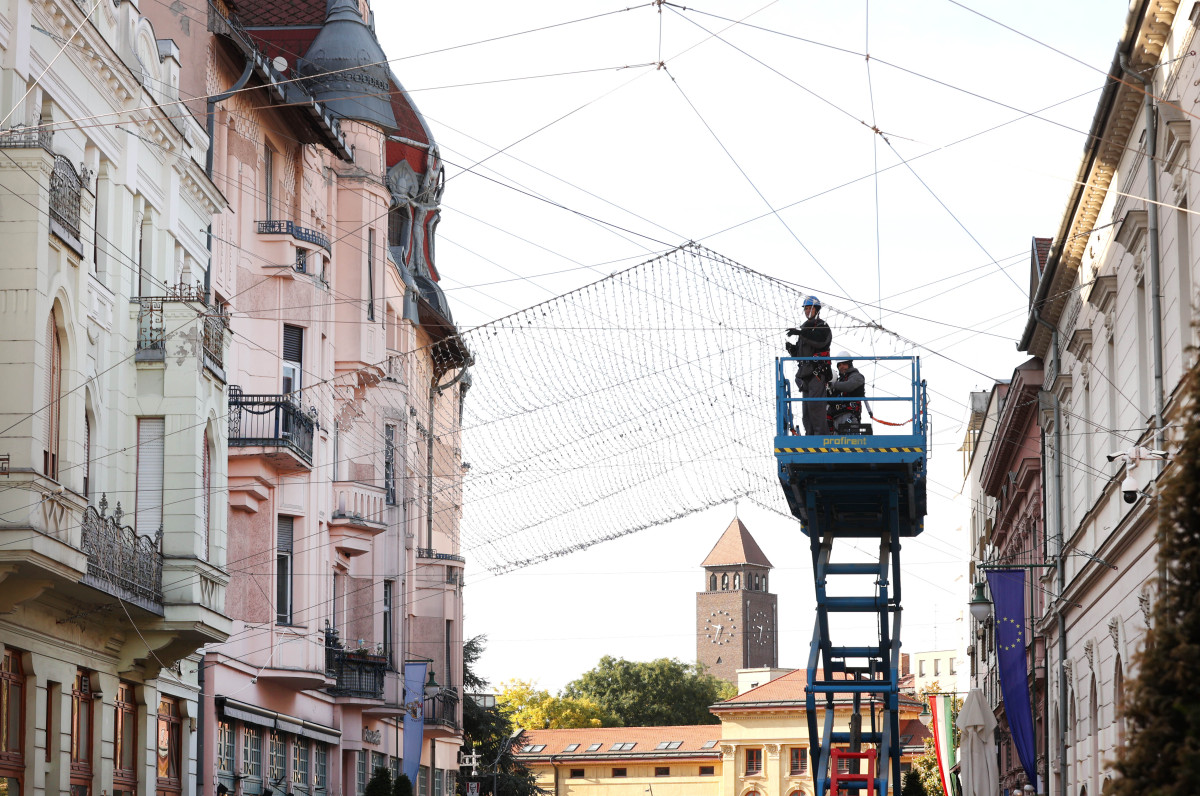 A nyár még csak nemrég ért véget, a napvitorlák, amelyek a szegedi Kárász utcán hűvöst tartanak, mindössze néhány napja kerültek le, a karácsonyi égősor azonban már most a helyükre kerül.