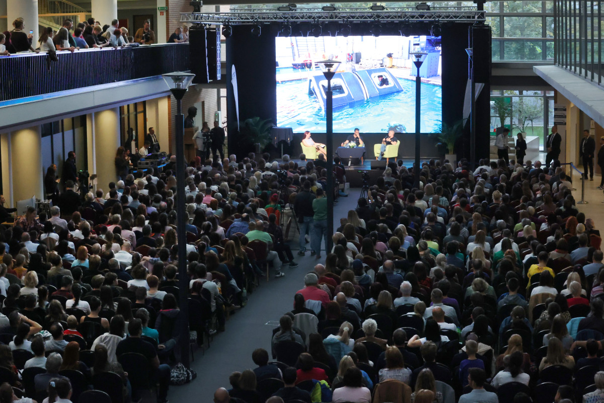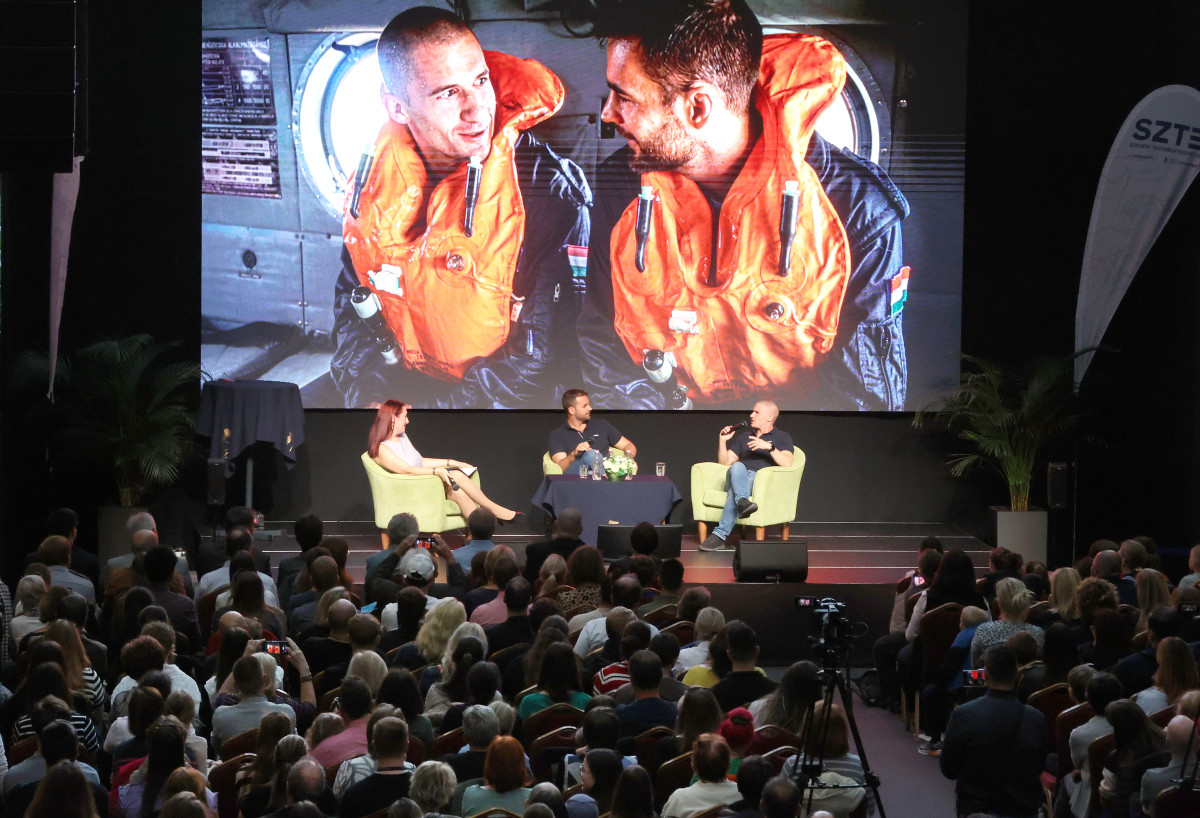 A rendezvényt Prof. Dr. Kónya Zoltán, a Szegedi Tudományegyetem tudományos és innovációs rektorhelyettese nyitotta meg rövid beszédével. Ezt követően a Szegedi Tudományegyetem munkatársa, Hegedűs-Varga Krisztina moderátorként a színpadra szólította Kapu Tibor és Cserényi Gyula űrhajósokat, akiket vastaps fogadott.