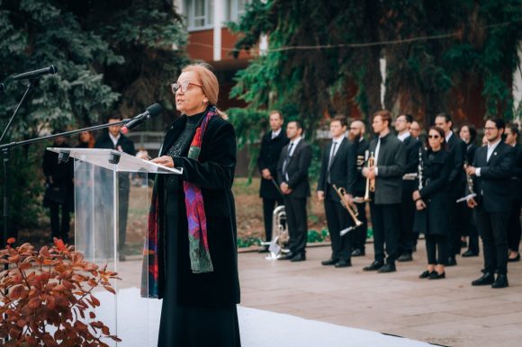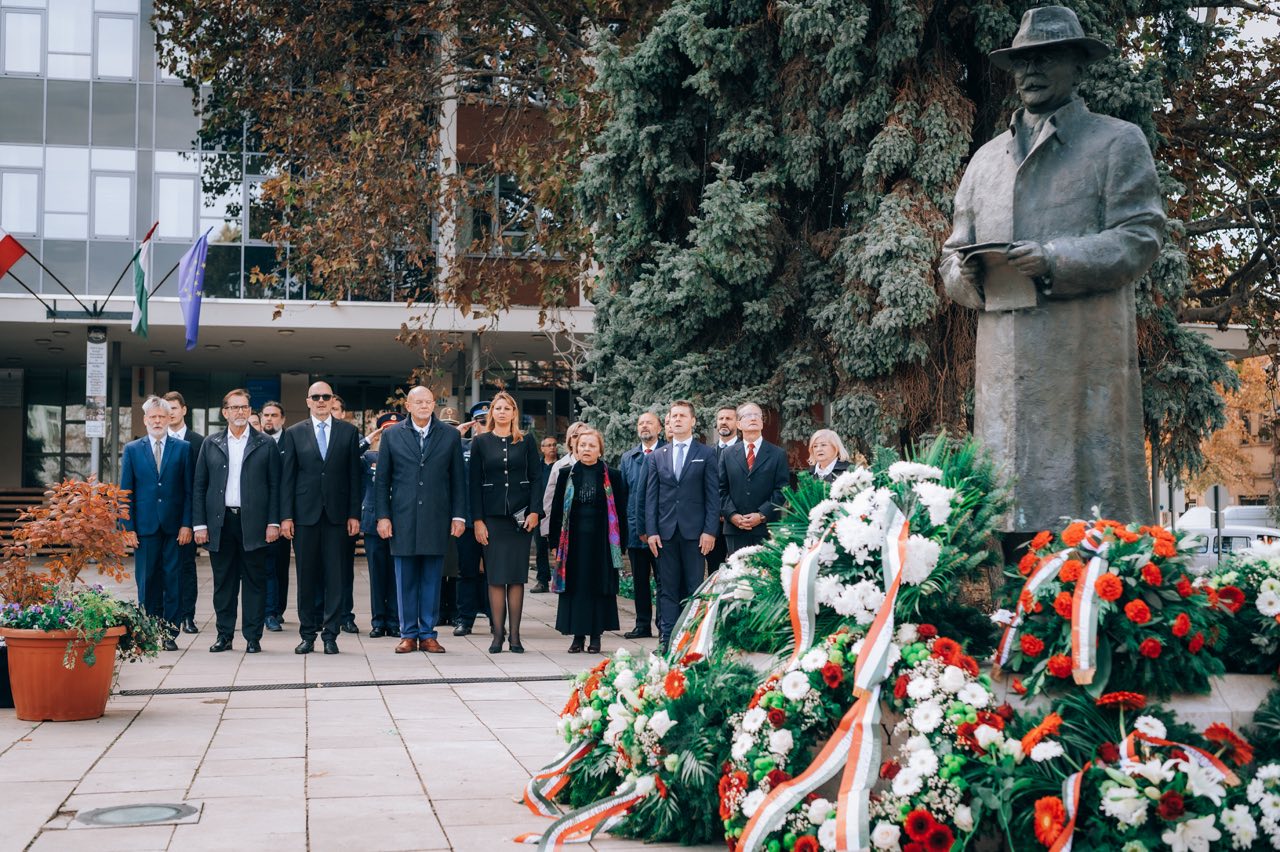 „A hivatásom az életem, és tudom: a zene mindig többet jelent puszta hangoknál, dallamoknál. A zene erőt ad, közösséget teremt, és kifejezi azt, amit szavakkal nem lehet elmondani. Így vált Beethoven Egmont-nyitánya és a Honvágydal is a magyar forradalom szimbólumává. Utóbbit betiltották a forradalom leverése után – csak a Szabad Európa Rádió hullámhosszán csendülhetett fel. Mégis minden magyar szívéig eljutott: könnyeket csalt azok szemébe, akik kénytelenek voltak hazájuktól távol élni, és azokéba is, akik itthon maradtak. Mert a zene ott kezdődik, ahol a szavak véget érnek, a zene a lélek legmélyéről szól. A zene ereje egyaránt azt üzeni nekünk, hogy a szabadság nem csupán történelmi emlék, hanem élő erő, amely újra és újra képes felemelni bennünket. Ezzel a hittel hajtsunk fejet hőseink előtt, és vigyük együtt tovább a szabadság örökségét, amely erőt ad a jelennek és reményt a jövőnek” – zárta beszédét.