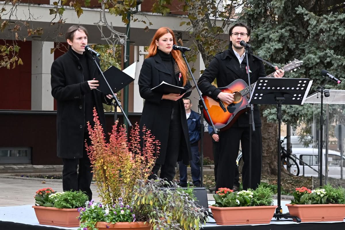 Miután Vajda Júlia befejezte beszédét, beállt a Szeged Városi Kórusegyesület mellé, és velük együtt egy népdalcsokrot énekelt el. Ezután a díszünnepség közönsége a Szegedi Nemzeti Színház művészeinek – Fekete Patríciának, Turi Péternek és Krausz Gergőnek – irodalmi műsorát hallgathatta meg. Ebben az összeállításban a következő alkotások hangzottak el: Nemes Nagy Ágnes Én láttam ezt című verse, a Magyar szürke, a Honvágydal, Cseh Tamás Corvin köziek című dalai; Petri György Októberi capriccio valamint Petőfi Sándor Az ítélet című verse.