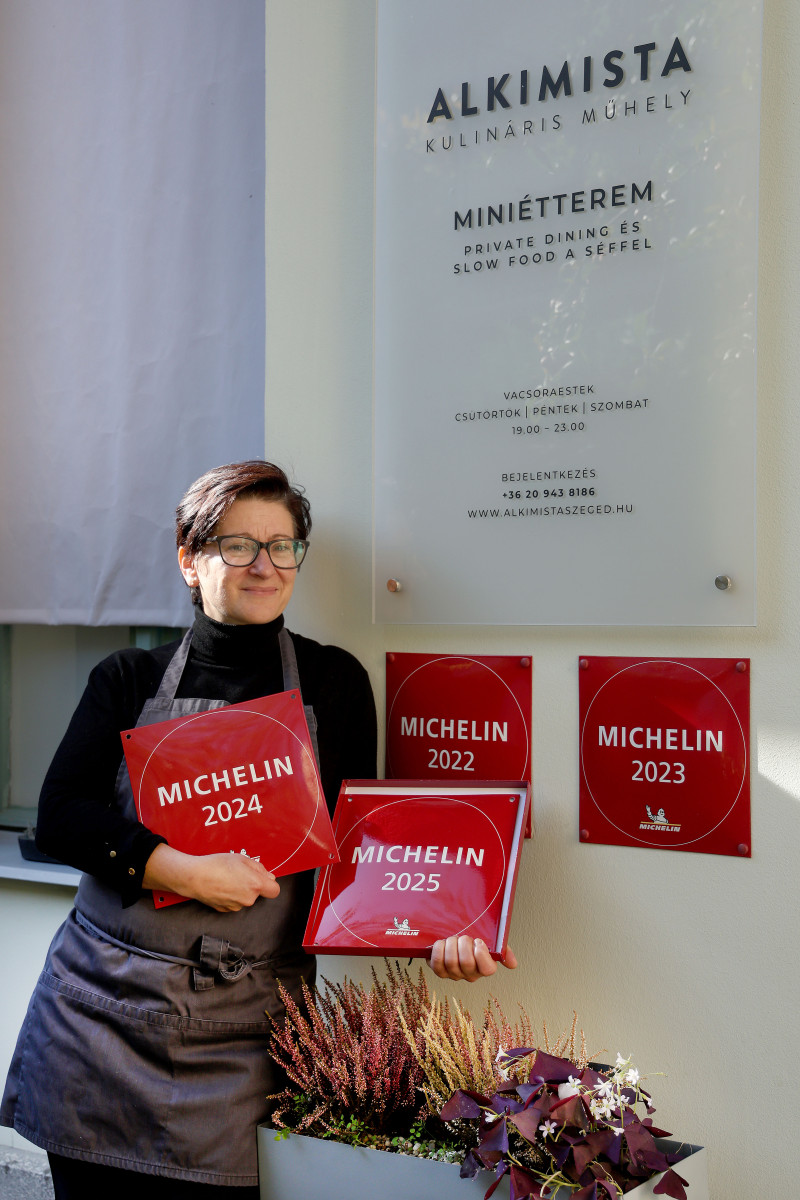 Ahogy megírtuk, 2025-ben tíz magyar étterem kapott Michelin-csillagot a Michelin Guide francia étteremkalauz október 9-ei, budapesti díjátadóján. Így Magyarországon immár kettő két Michelin-csillagos étterem, nyolc egy Michelin-csillagos, hat zöld csillagos, tizenhárom Bib Gourmand-díjas és 55 Michelin által ajánlott étterem van, köztük a szegedi Tiszavirág Étterem és az Alkimista Kulináris Műhely is, melynek séfje néhány napja vehette át a negyedik, tűzpiros plakettjét.