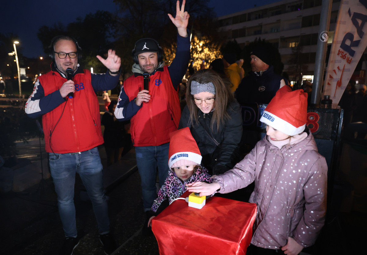 Miután a Szegedi Környezetgazdálkodási Nonprofit Kft. munkatársai az elmúlt hetekben a város minden pontján elhelyezték az ünnepi fényfűzéreket, ma a Rádió88 egy szerencsés hallgatója és gyermekei felkapcsolhatták őket, ehhez pedig csak egy kis gombot kellett megnyomniuk a Dugonics téren. A gombnyomást az SZTE Juhász Gyula Gyakorló Általános és Alapfokú Művészeti Iskola Bartók Gyermekkórusának előadása előzte meg, amely során karácsonyi dalokat adtak elő.