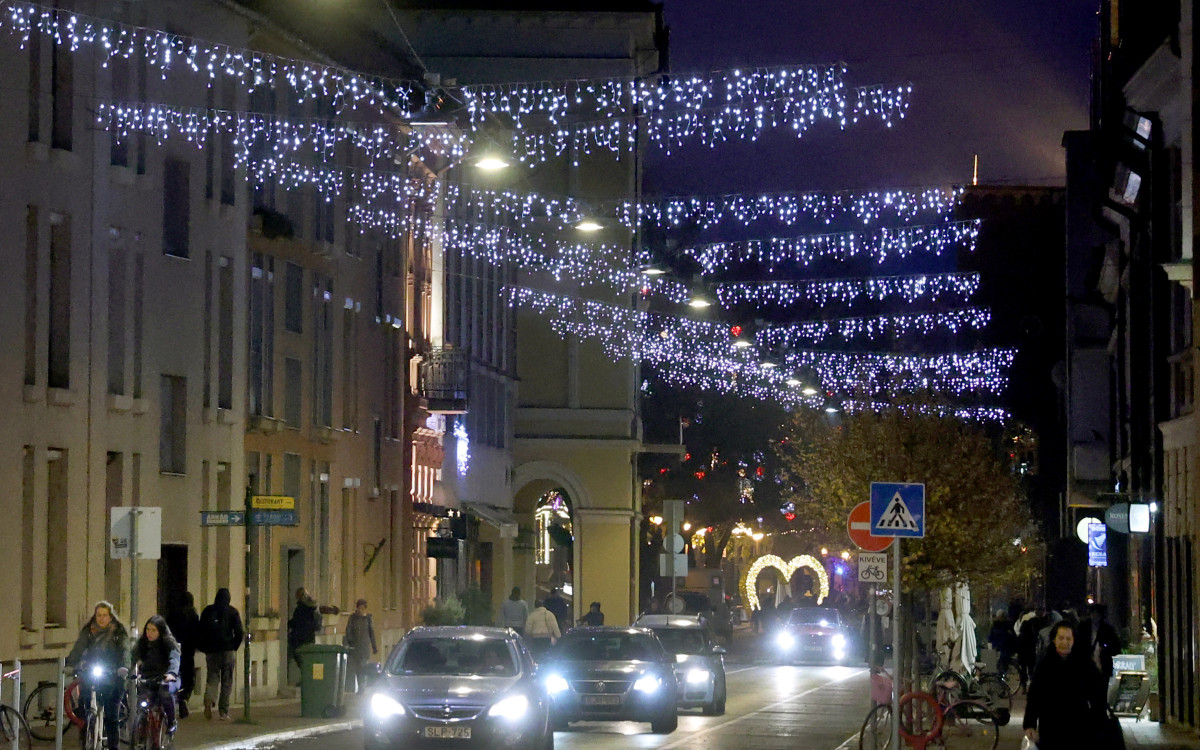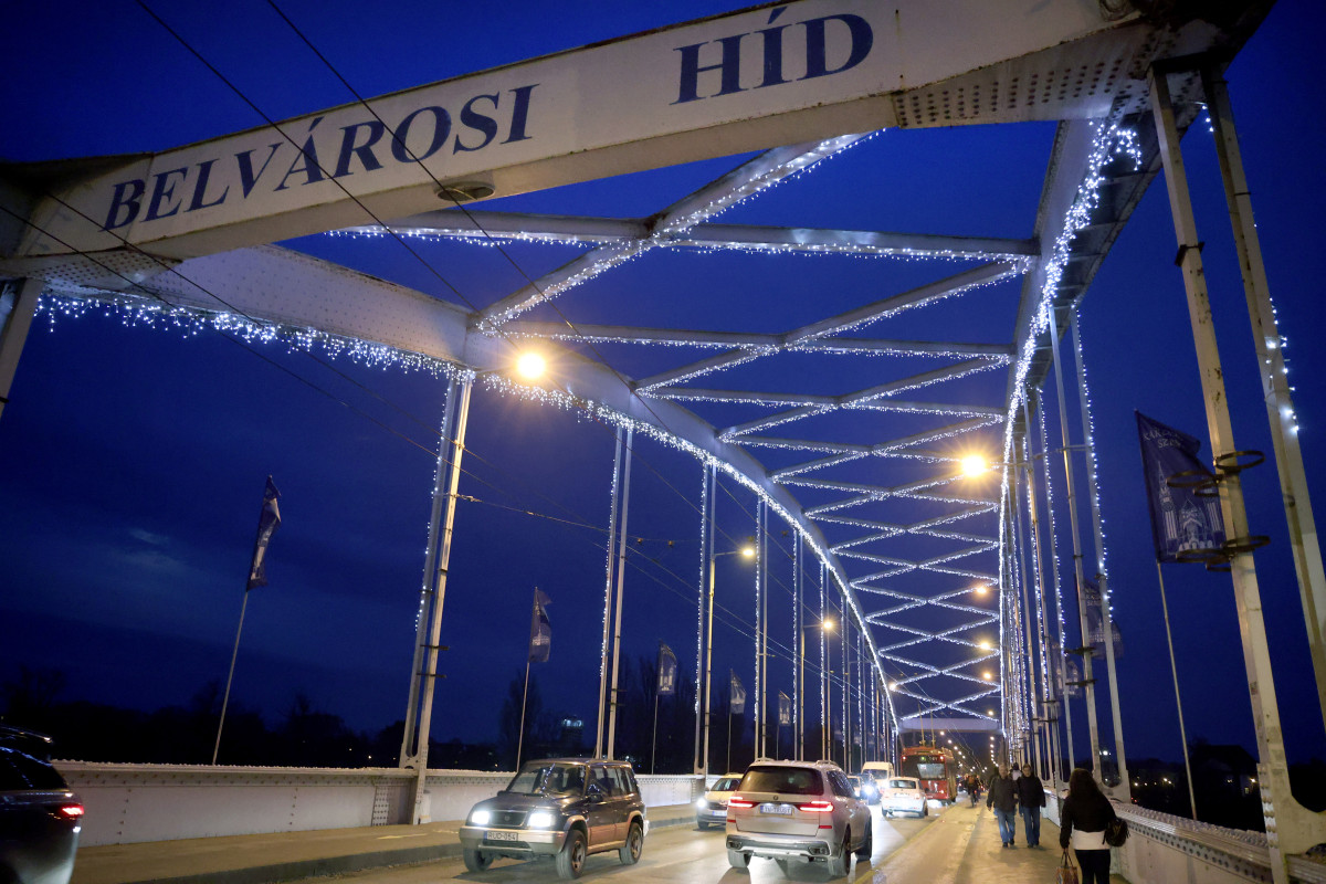 A Belvárosi híd, az Oskola utca, a Kárász utca, a Tisza Lajos körút és a Dugonics tér is magára öltötte az ünnep fényeit.