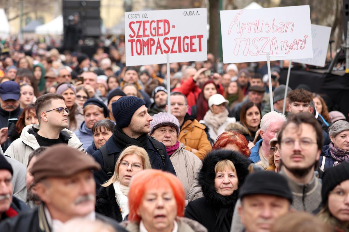 Teljesen megtelt ma délután a Széchenyi tér, a Tisza Párt „Út a Győzelembe” nevezetű országjáró körútjának szegedi állomásán. Az eseményen bemutatkoztak a párt Csongrád-Csanád vármegyei képviselőjelöltjei is.