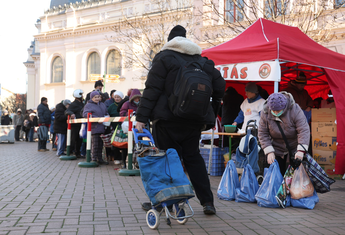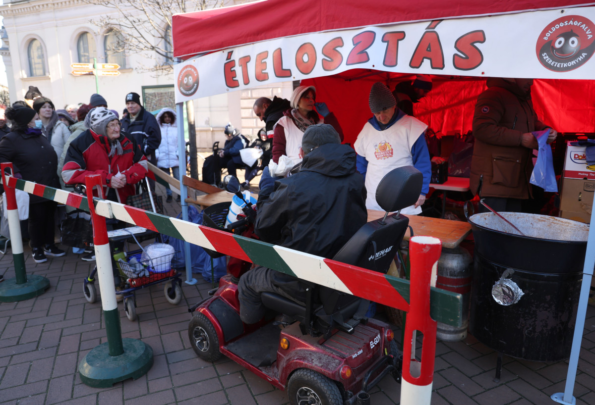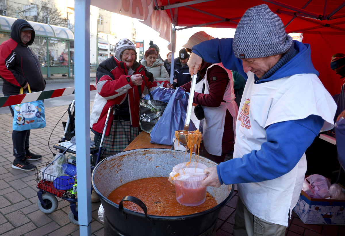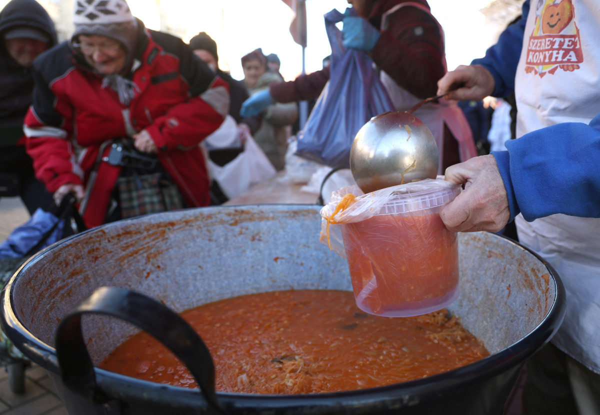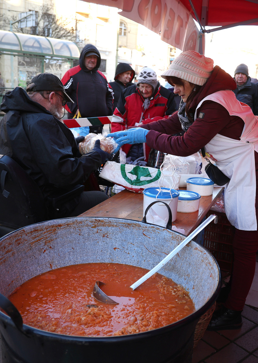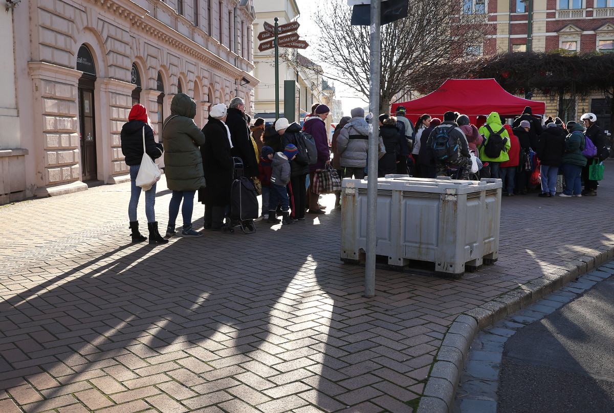 Ötszáz adag ételt osztottak szét Szegeden ma, az Anna-kútnál