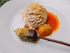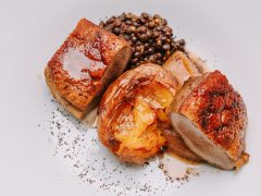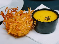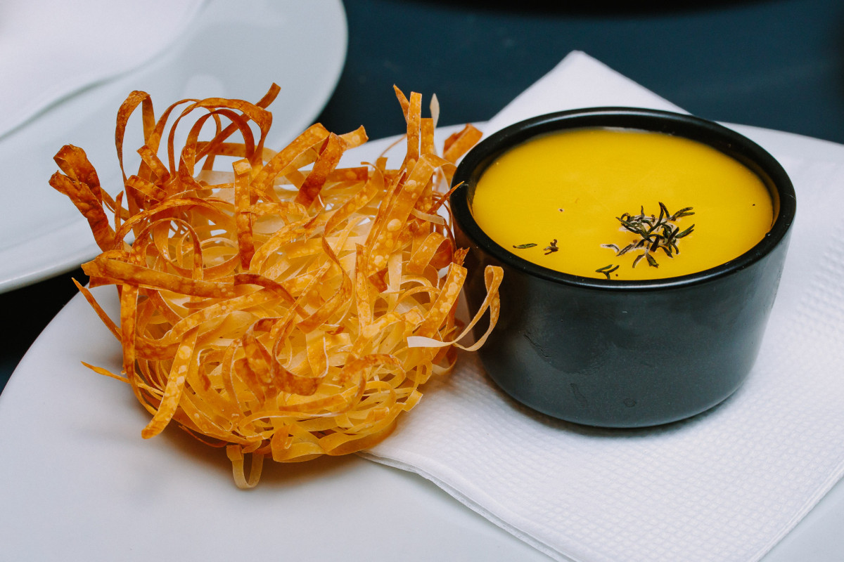 A menüsor olyan különlegességeket tartalmazott, mint a szarvasgomba cseppel tálalt túrófánk, a préselt malacfej tormahabbal, vagy a rendkívül kreatív szegény leves gazdagon, amely korpaciberéből készült, füstölt tarjás tésztabatyuval és szegedi paprikamag olajjal. A főétel téli kemencés kacsamell volt birsalmakrémmel, a vacsorát pedig gesztenye és sült narancs alapú desszert koronázta meg.