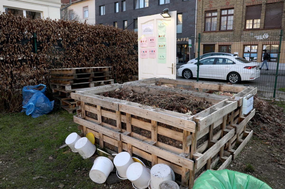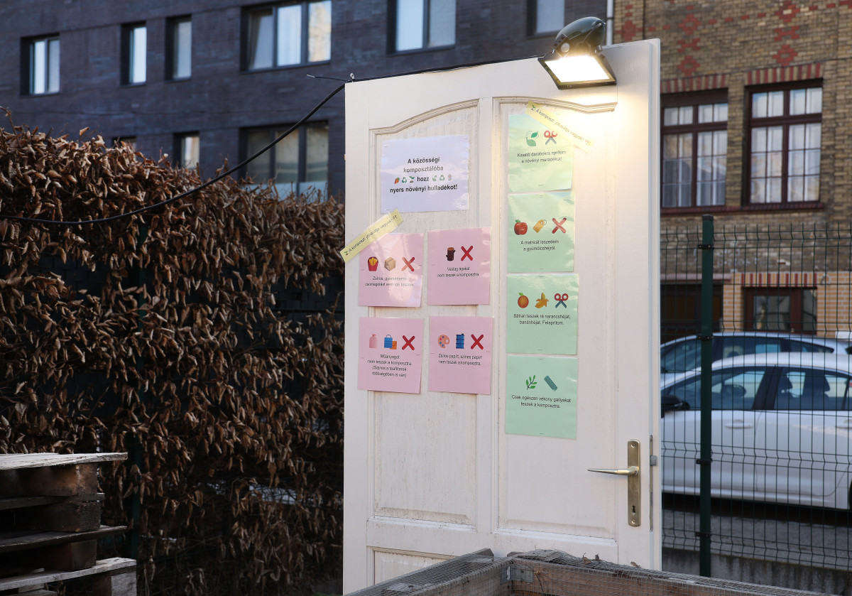 A Dáni utcában található udvarban jelenleg két komposztláda van, és hamarosan egy harmadik is lesz. A nyers növényi hulladékot pedig reggeltől-estig bárki, bármikor elviheti és belerakhatja. Azt, hogy éppen melyikbe érdemes önteni, felirat jelzi a láda oldalán.