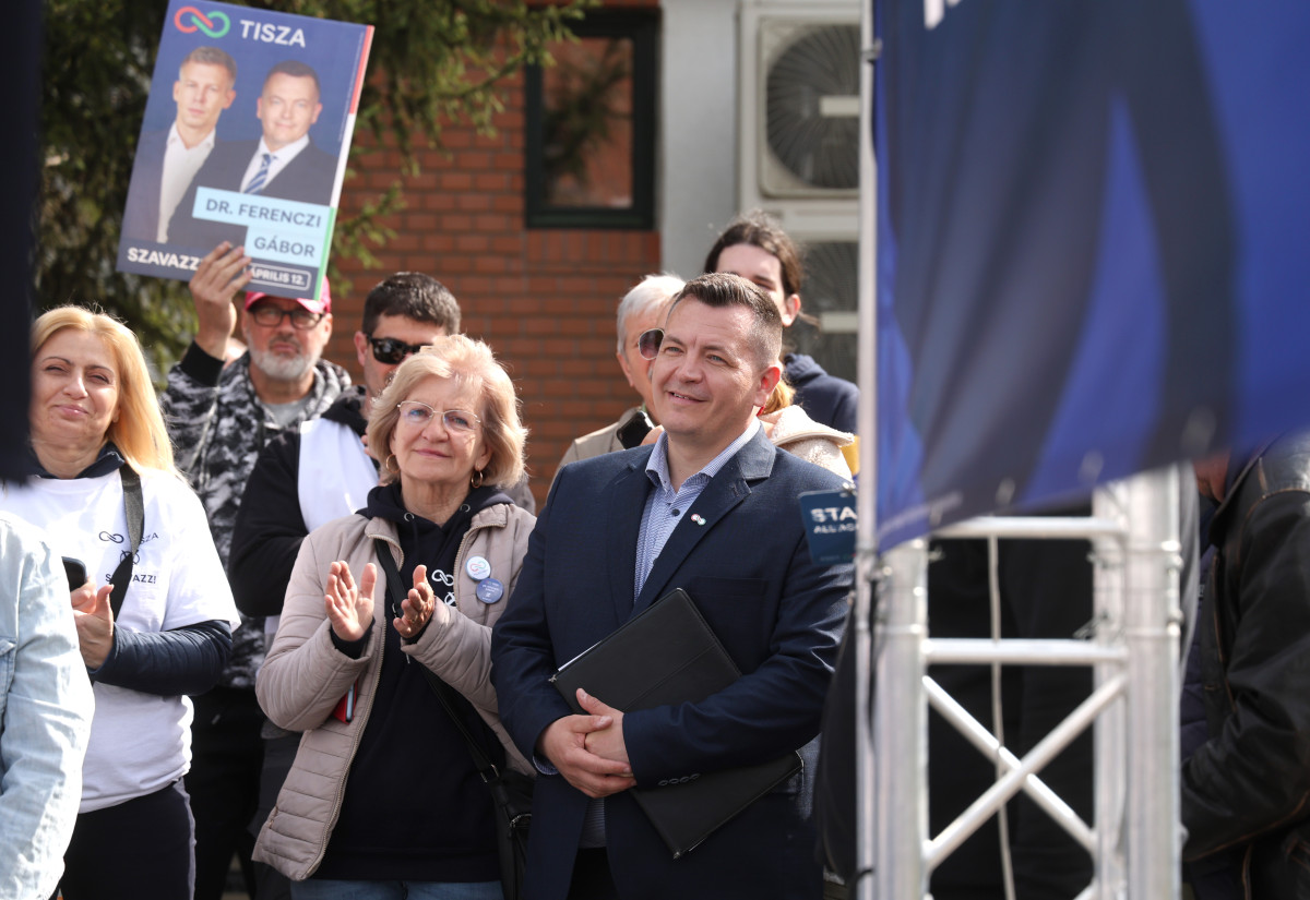 A fórumon bemutatkozott a Tisza Párt választókerületi jelöltje, dr. Ferenczi Gábor. A négygyermekes, makói születésű vállalkozó élesen bírálta a jelenlegi kormányzati politikát, amely véleménye szerint megnyirbálta az önkormányzatok forrásait.