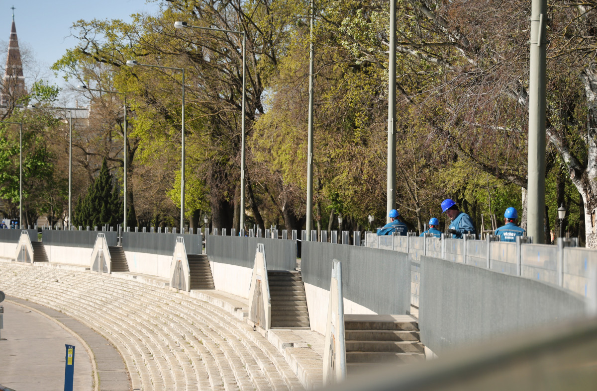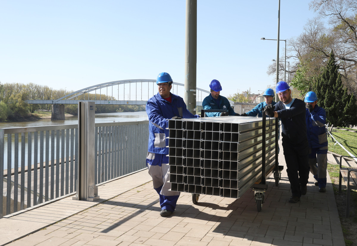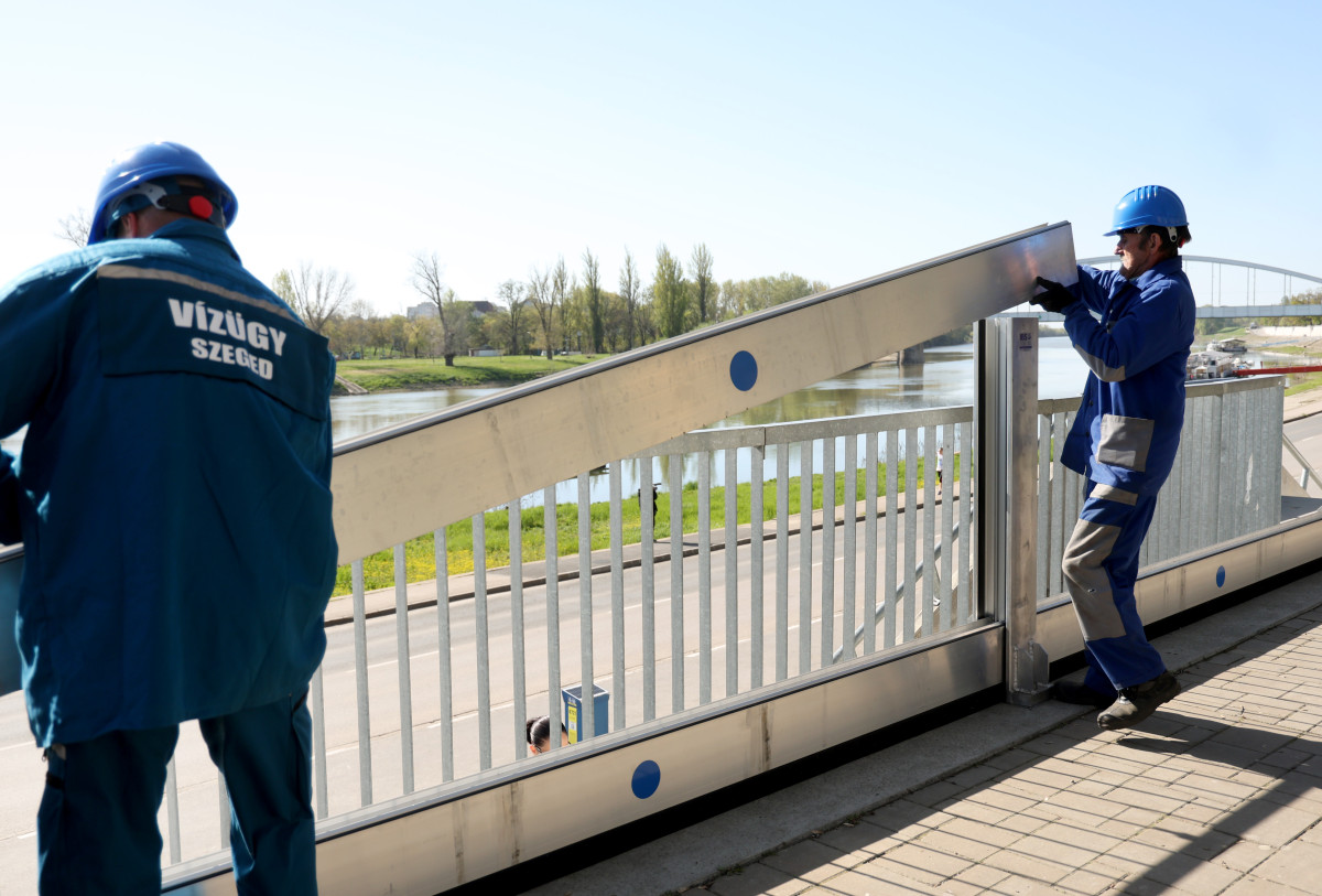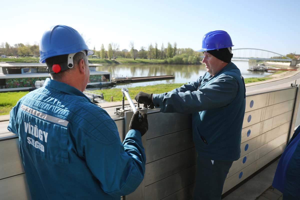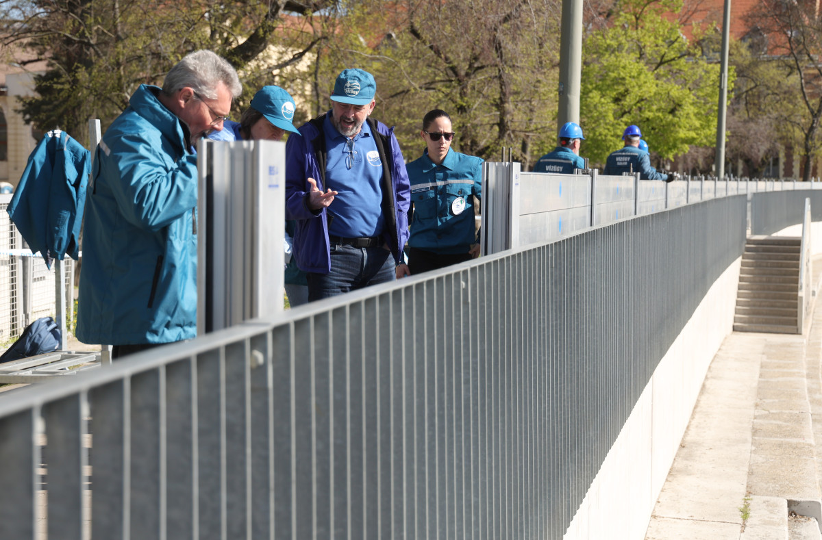 A szakemberek élesben tesztelik az árvízvédelmi rendszert az Etelka sor és a Halászcsárdák lejárója közötti szakaszon. A gyakorlatban az ATIVIZIG közel 50 munkatársa vesz részt, akik gépi szállító járművekkel mozgatják a mobil elemeket.