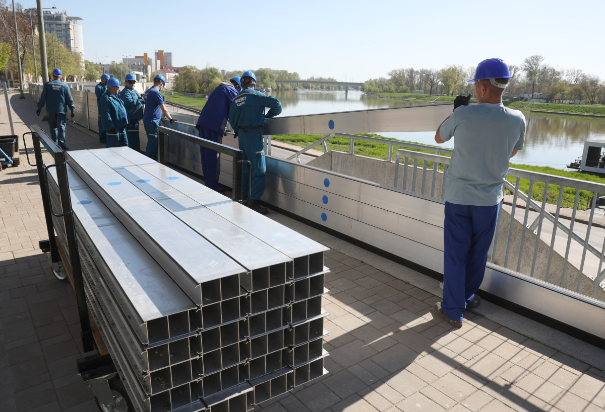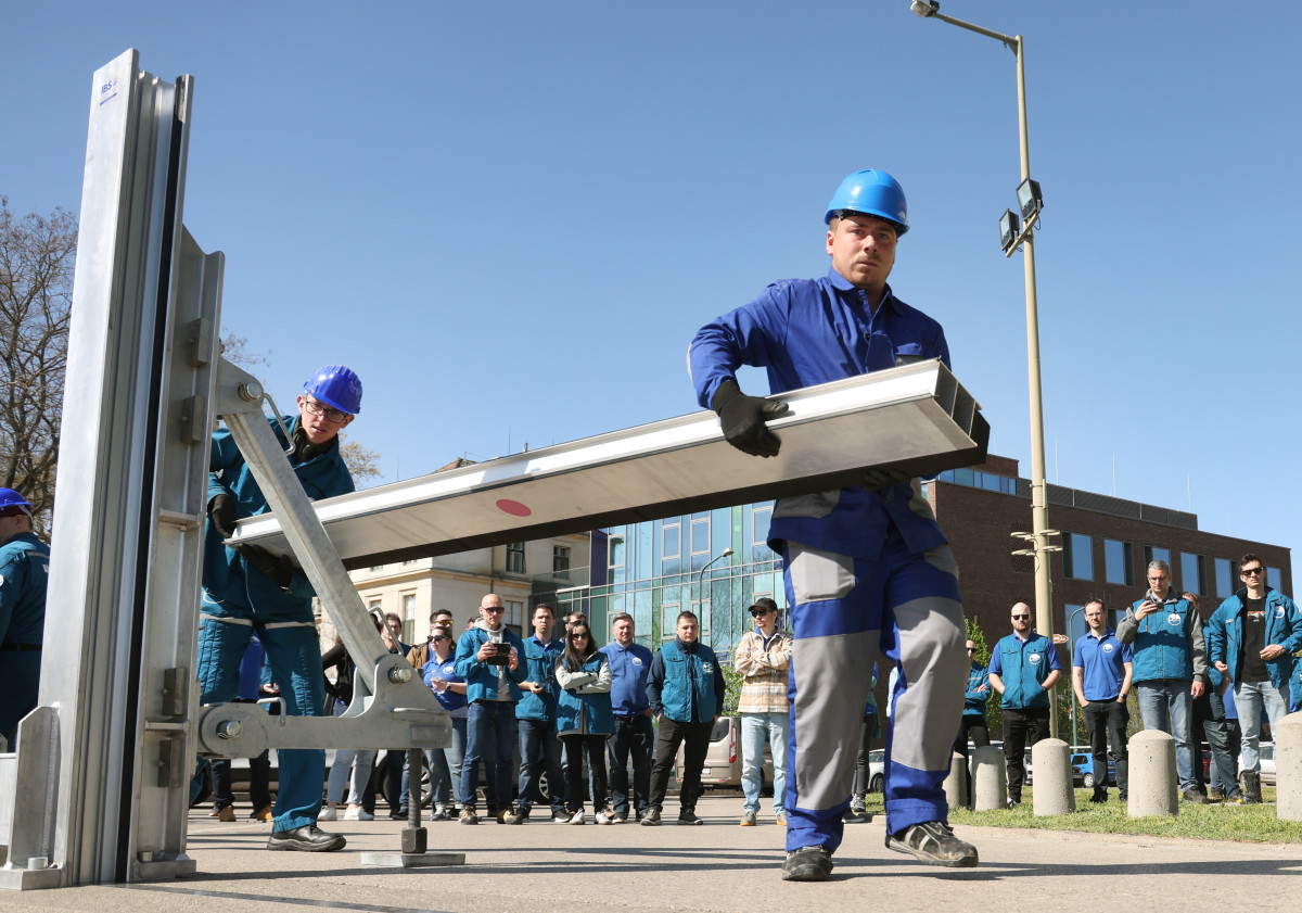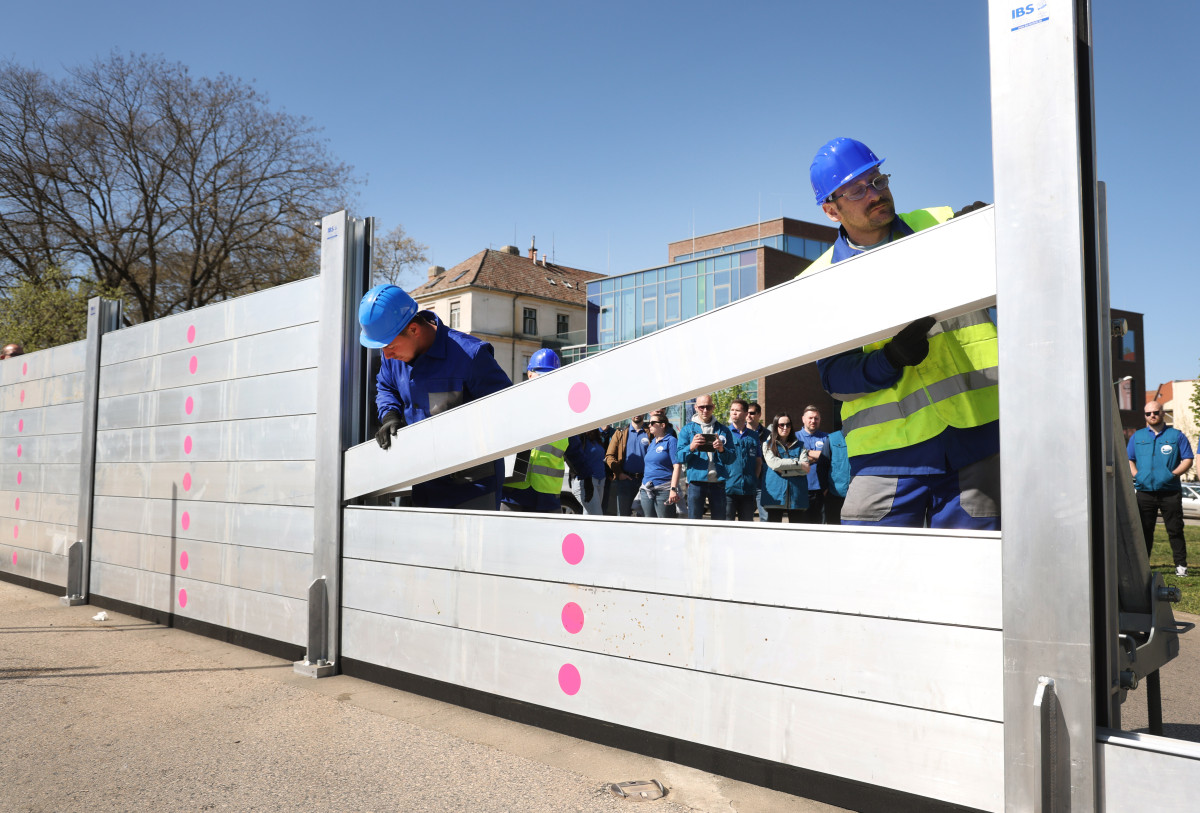 A szakemberek ma reggel megkezdték a mobil gátrendszer elemeinek összeállítását. A gyakorlat célja a védekezésben résztvevők felkészültségének tesztelése és a szerelési folyamatok gördülékenységének biztosítása egy esetleges éles árvízi helyzet előtt.