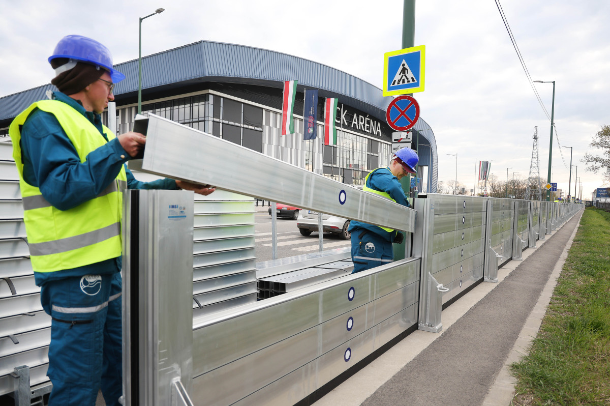 A gyakorlat csütörtökön a Felső Tisza-parton, a Pick Aréna előtti szakaszon folytatódik, ahol további 600 méteren építik ki az ideiglenes falat.