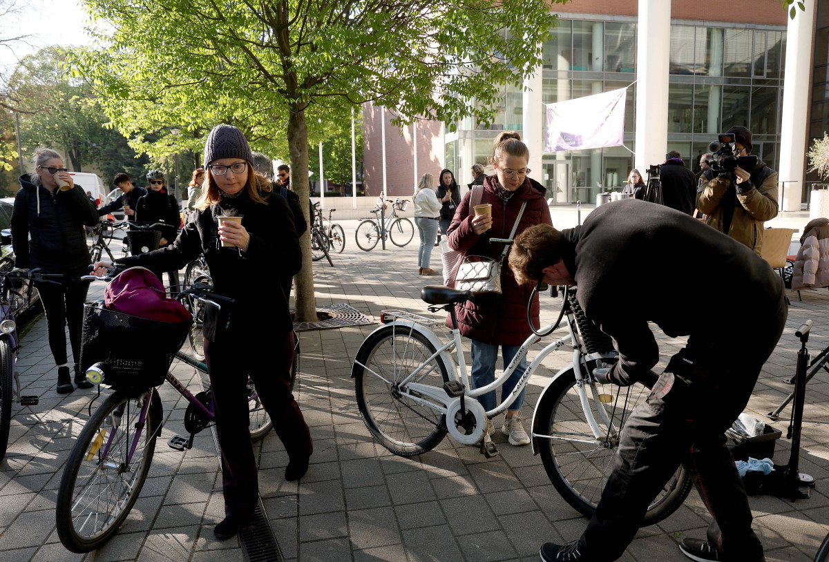 A kora reggeli órákban a TIK bejárata mellett felállított pultoknál friss almával, energiát adó müzliszelettel, teával és limonádéval köszöntötték azokat, akik autó helyett bicóra pattantak. A szervezők célja egyértelmű: elismerni a bringások környezetért tett erőfeszítéseit, és ösztönözni a még hezitálókat az alternatív közlekedésre.