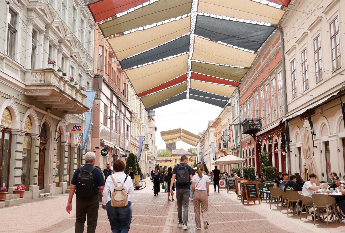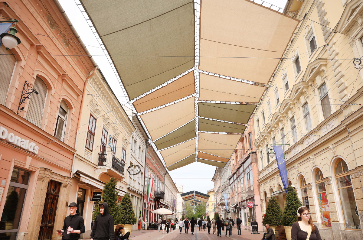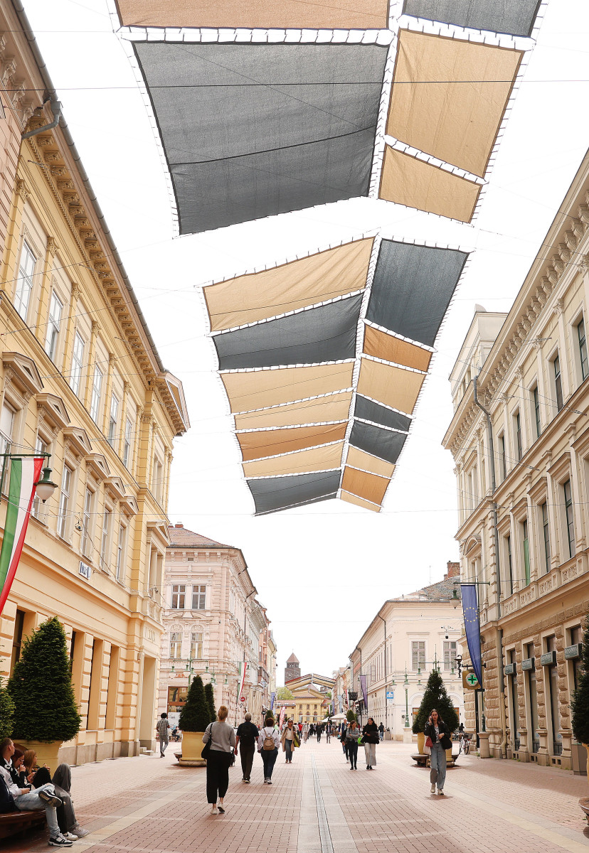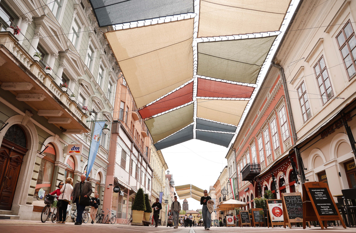 Elkezdték felszerelni a napvitorlákat Szegeden, a Kárász utcán.