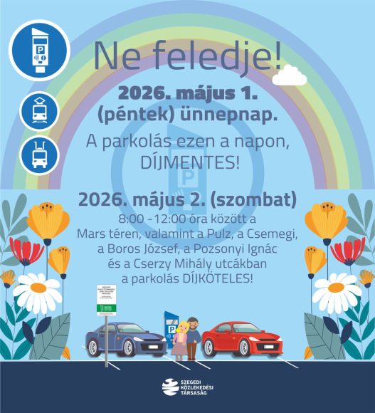 A Szegedi Közlekedési Társaság hivatalos Facebook-oldalán ismertette a közösségi közlekedésre vonatkozó, május elsejei menetrendet és parkolási rendet.