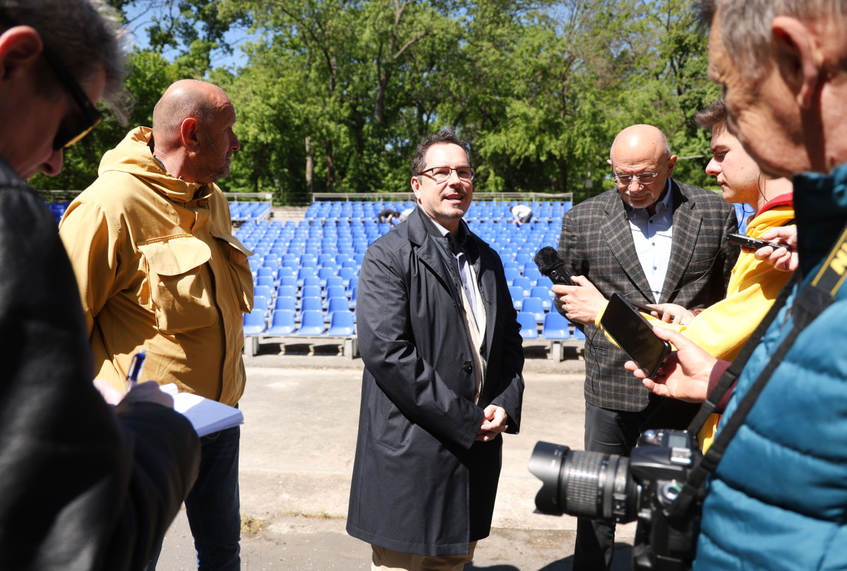 Hangsúlyozta, a főigazgatóval közösen a fenntartható és költséghatékony megvalósításra törekedtek, ezért az elbontott fapadokat tartó, megmaradt betontömbökre építtették fel az új tűzihorganyzott, rozsdamentes fém alapszerkezetet, amely a székek rögzítésére szolgál. A munka a fapadok elbontásával vette kezdetét, majd április 13-án érkeztek meg teljes számban az új ülőhelyek, amelyektől kékbe öltözött az újszegedi nézőtér. 800 folyóméternyi hosszúságú fémszelvény alkotja a fogadóstruktúrát, mintegy 7,5 tonna a szerkezet össztömege, 360 darab összekötő konzolra 1159 talplemez és szék került fel. Hozzátette, a nézőtér elrendezése és fogadóképessége nem változott.