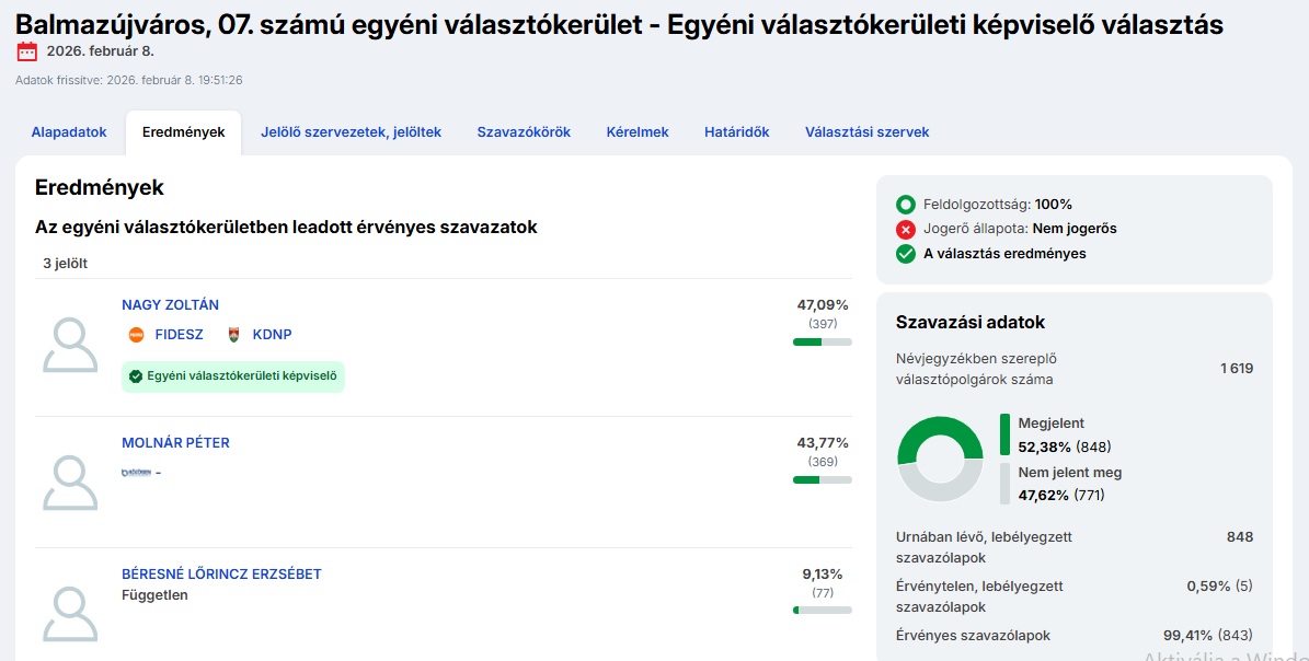 Afideszes Nagy Zoltán győzött a vasárnapi időközi választáson Balmazújvárosban. A referendumot azért kellett kiírni, mert Demeter Pál (Közösen Balmazújvárosért Egyesület- KBE) lemondott tisztségéről.