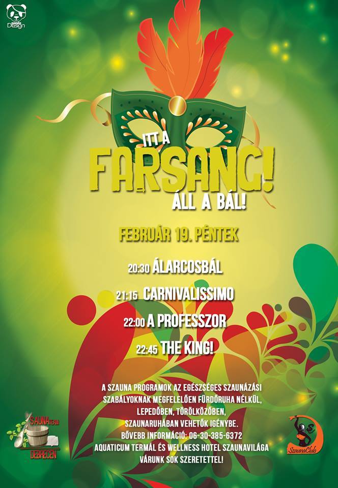 Különleges farsangi programra várják a felüdülésre vágyókat a debreceni Aquaticum Szaunavilágában.